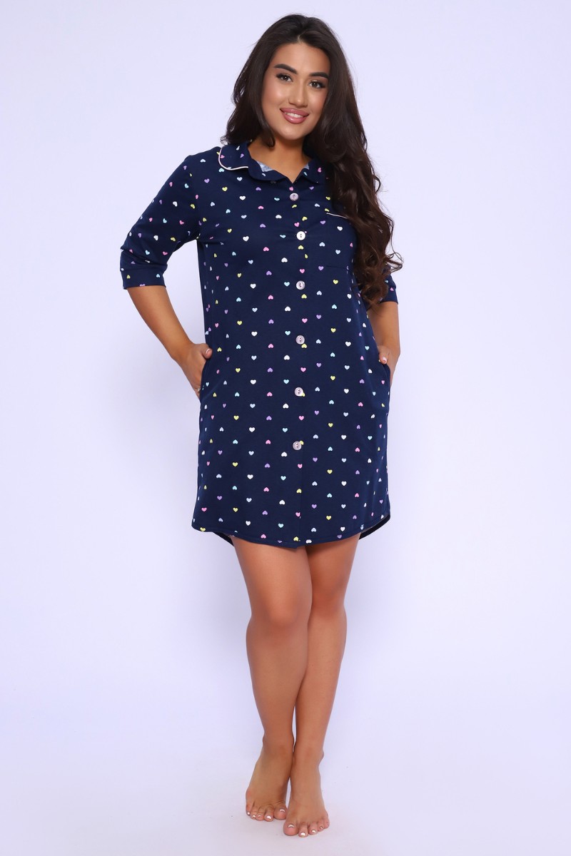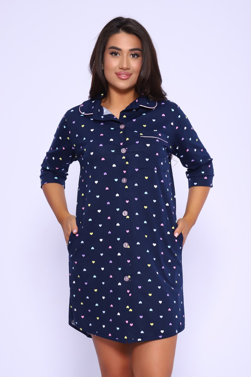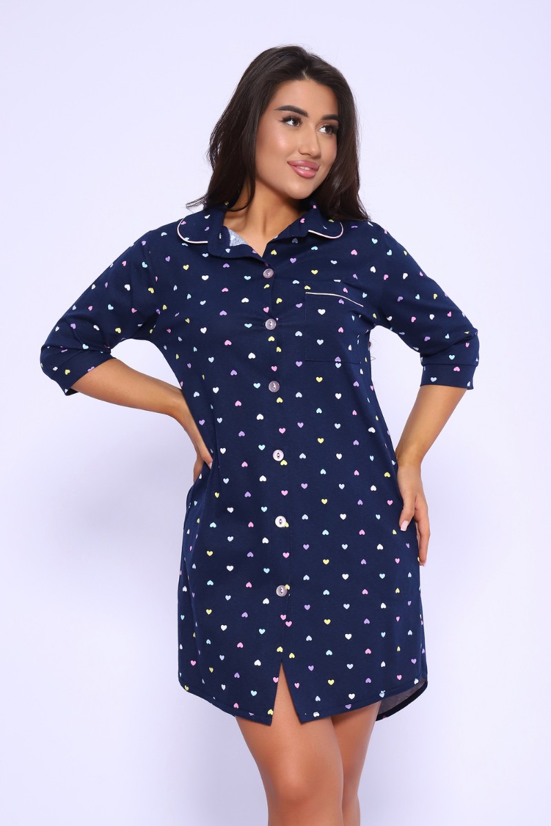 Представляем Вашему вниманию халат прямого силуэта на пуговицах. Воротник на стойке, закругленный с кантом. Рукава 3/4 с притачными манжетами. Карманы в боковых швах. На груди кармашек с отделочным кантиком. Низ халата обработан бейкой из основной ткани и закруглен к боковому шву. Спинка длиннее переда. Халат прекрасно подойдет для дома, дачи и отдыха.