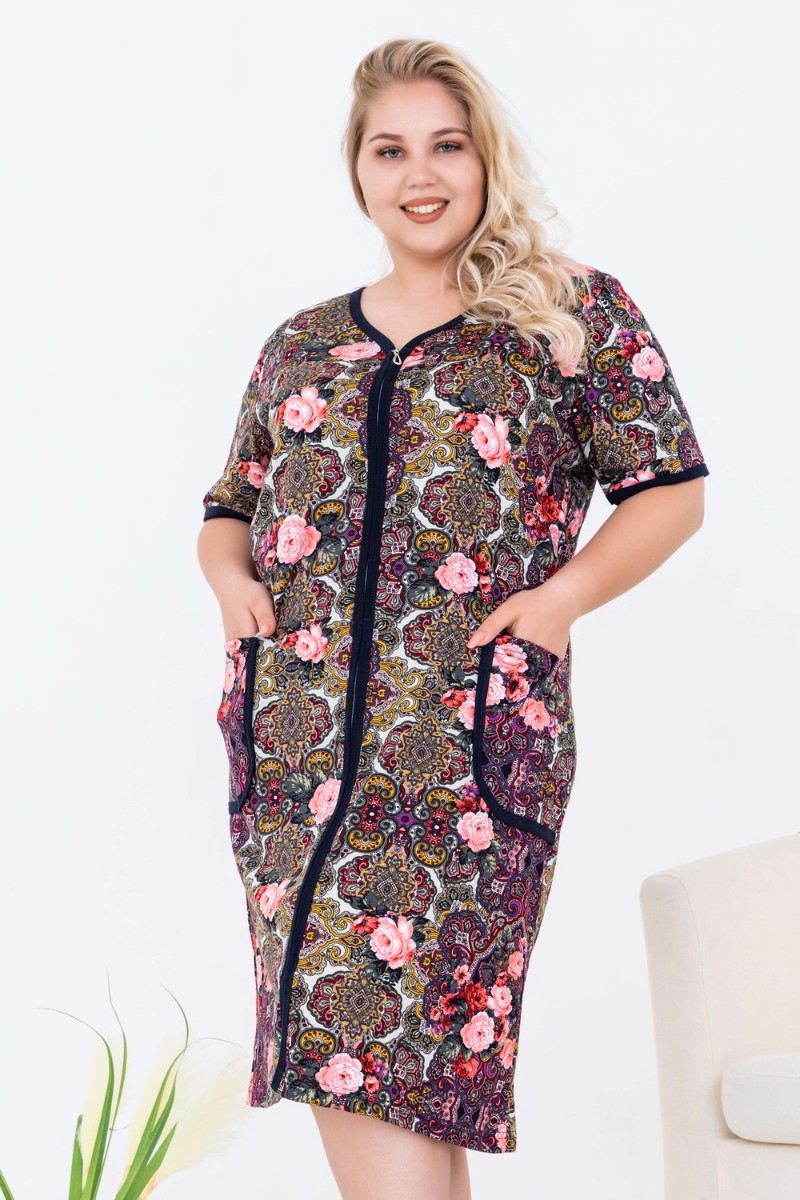 Халат женский №21531 кулирка (р-ры: 48-60) розы