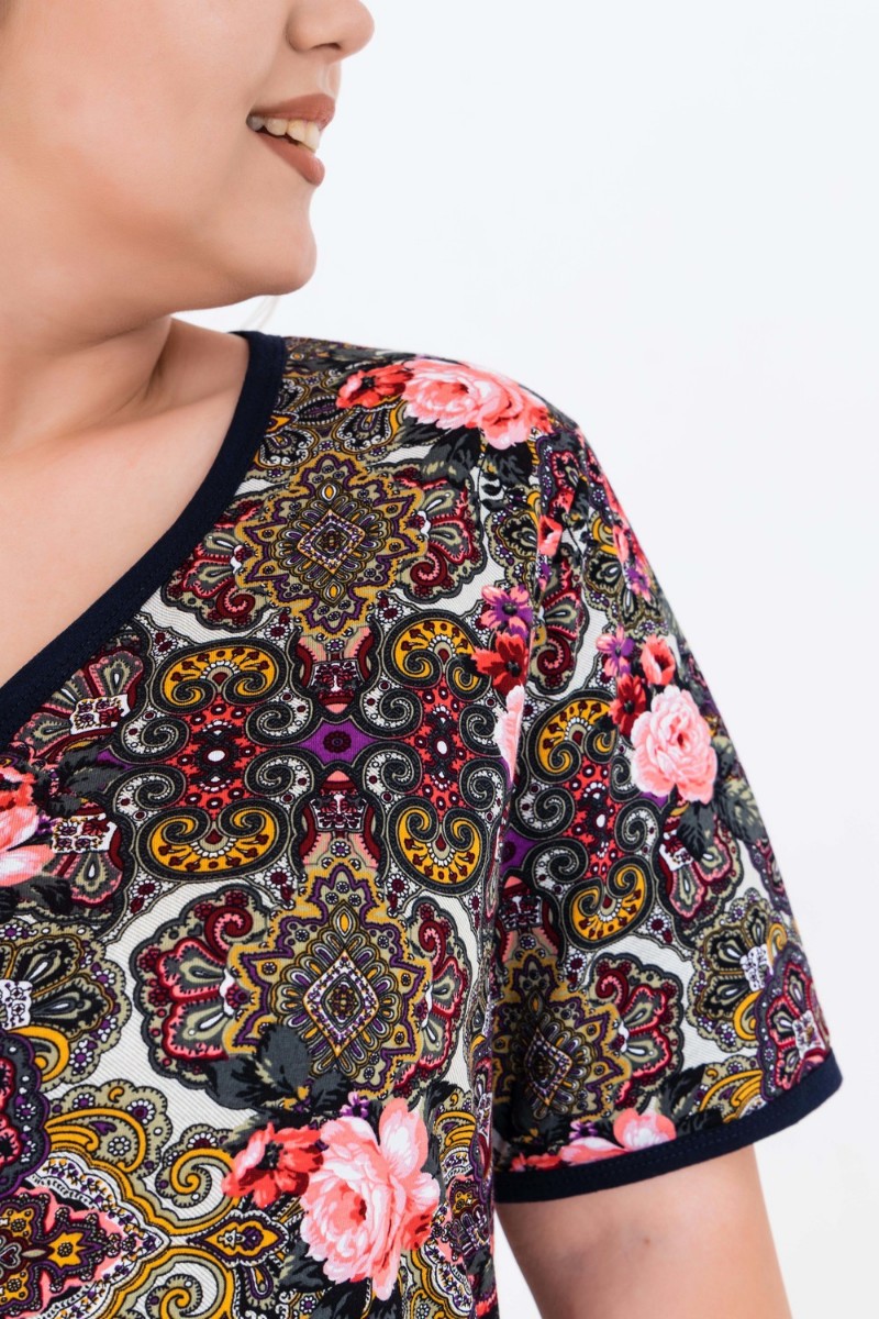 Все вещи классные: размер в размер, качество отличное, приятные к телу., расцветка яркая, художественно расположена на ткани.