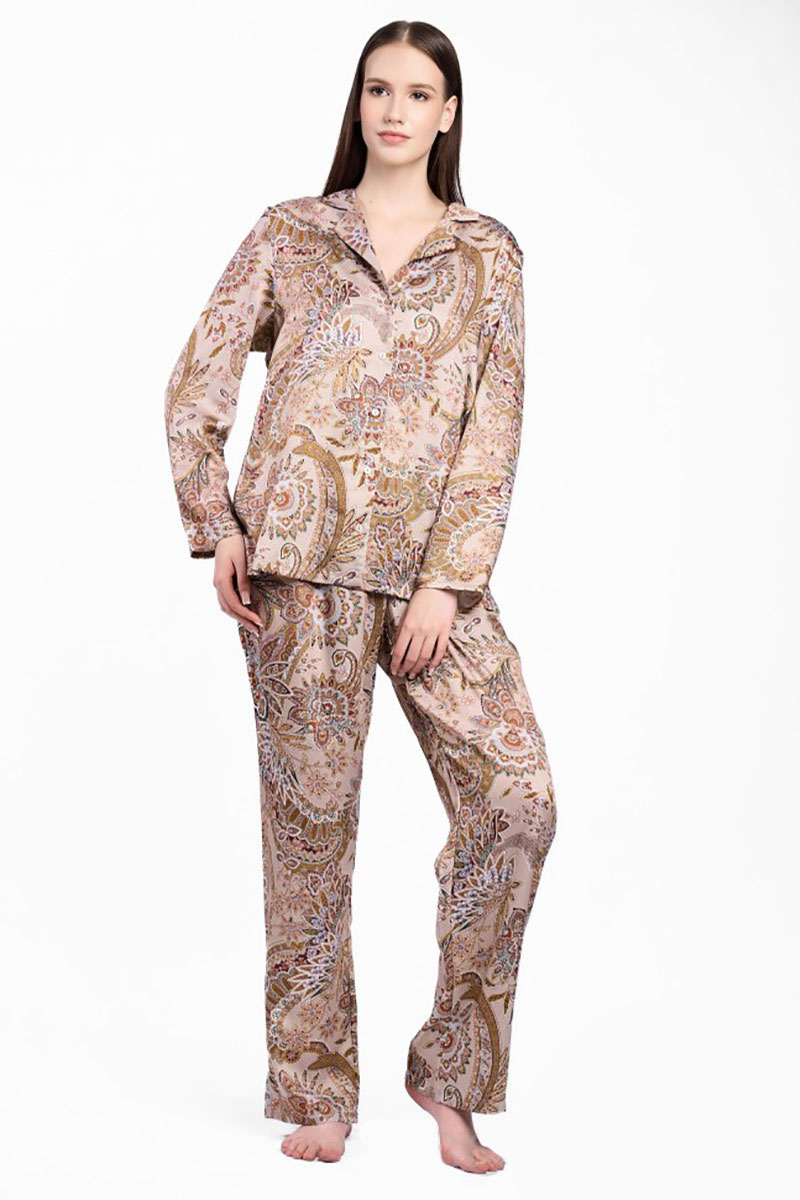 Представляем Вашему вниманию роскошную пижаму, изготовленную из тенселя - невероятно мягкого и шелковистого материала, сотканного из 100% натуральных волокон австралийского эвкалипта. Рубашка свободного кроя на пуговицах. Брюки на широкой мягкой резинке. Ткань обладает высокой гигроскопичностью, благодаря чему Вы будете испытывать исключительное ощущение комфорта всякий раз, когда будете ложиться спать в этой пижаме.