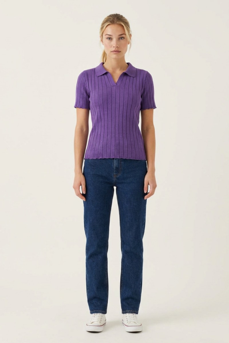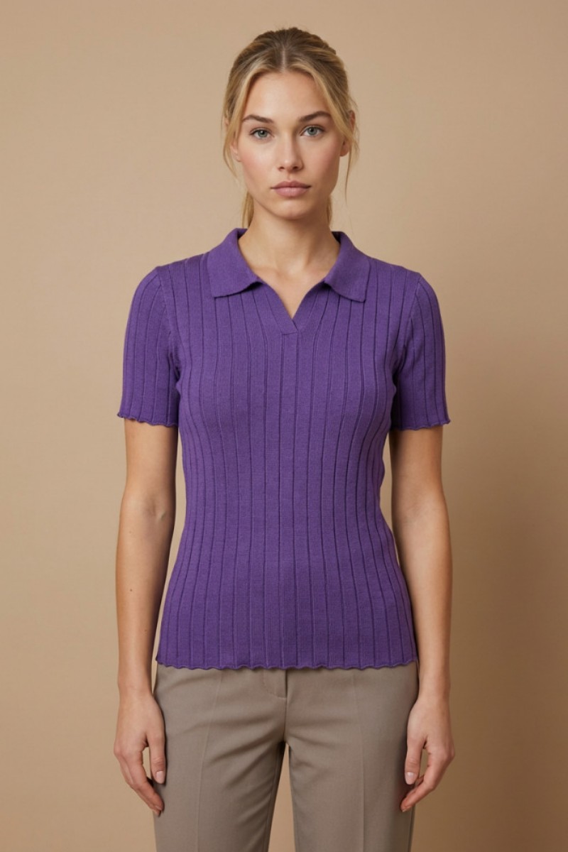 Футболка женская "Поло С" трикотажное полотно-пряжа (р-ры: 40-50) сиреневый