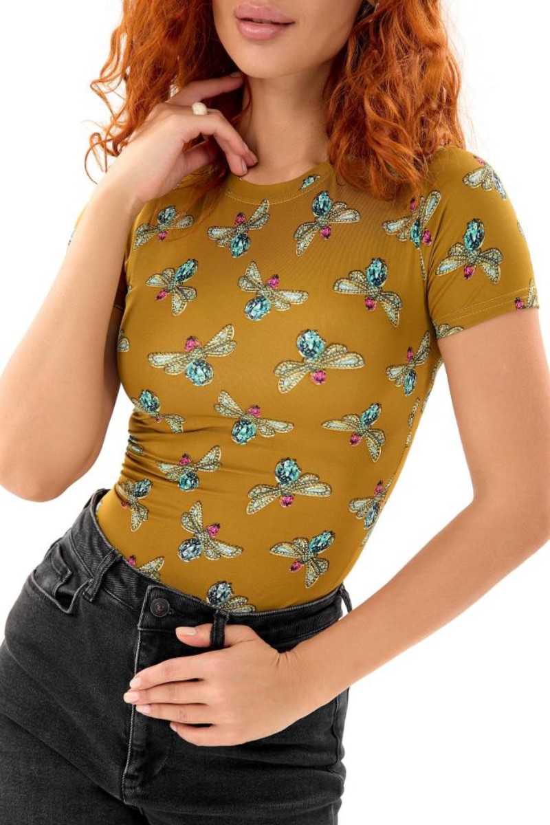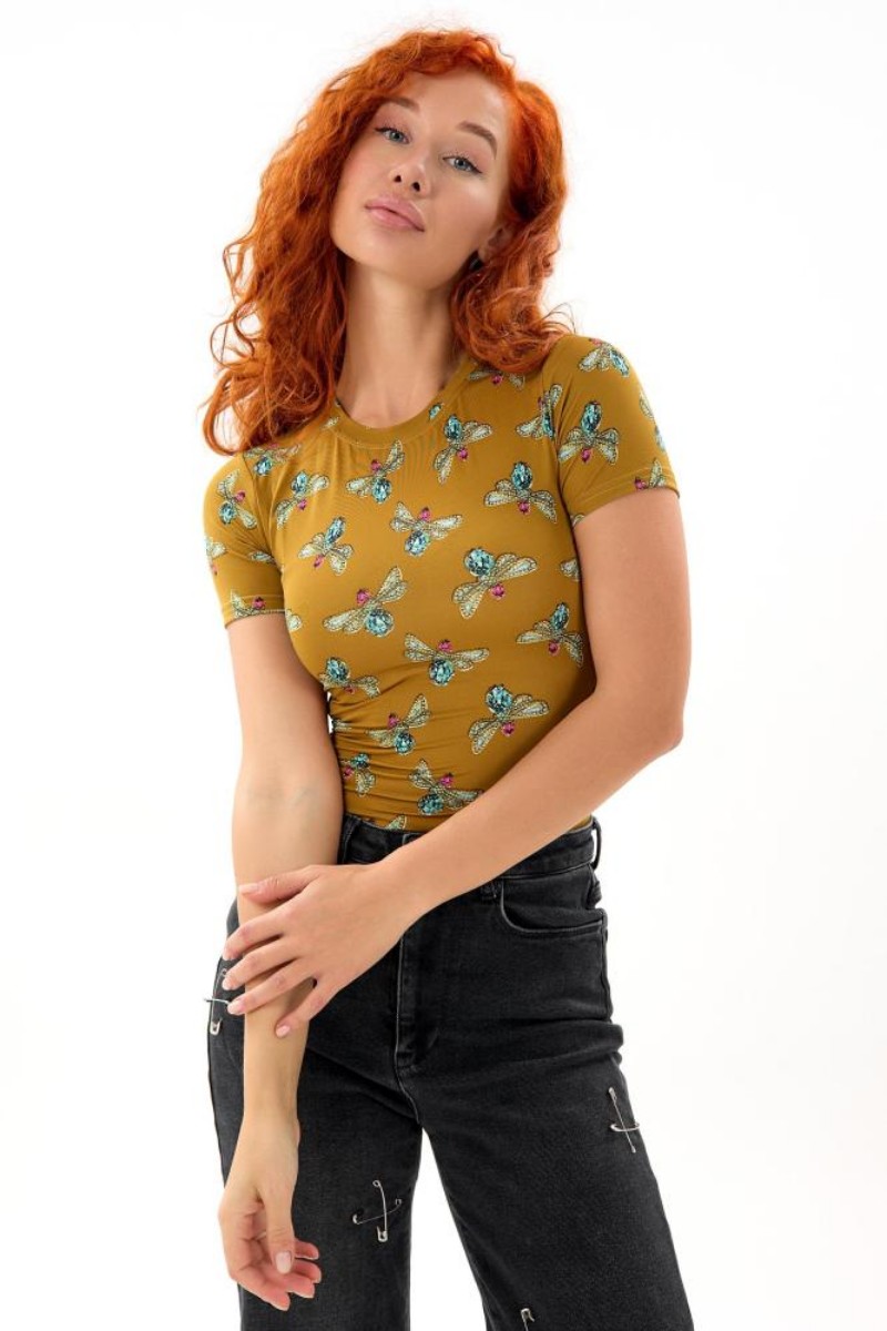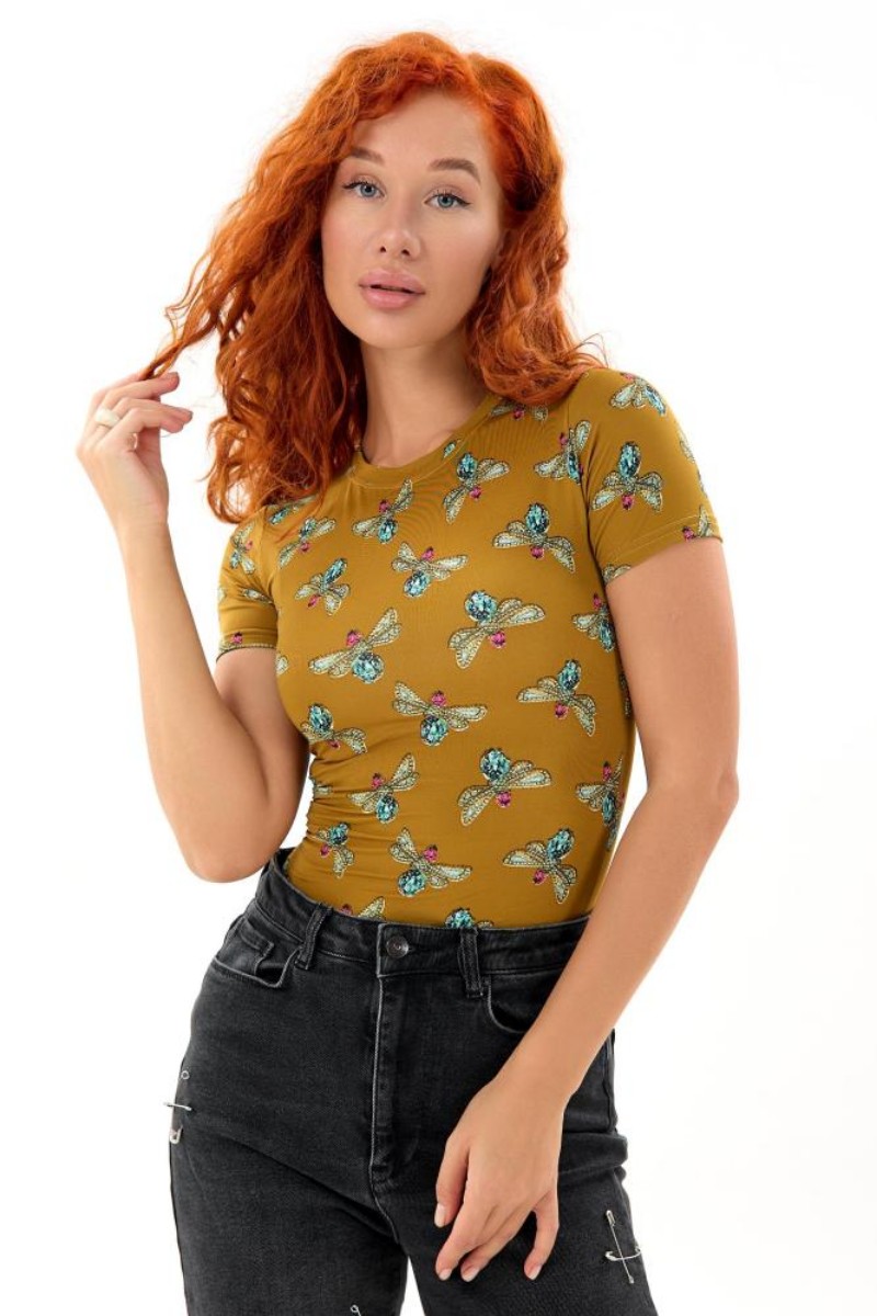 Футболка женская "Египет Ц" масло (р-ры: 42-48) стрекозы на желтом