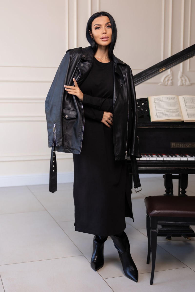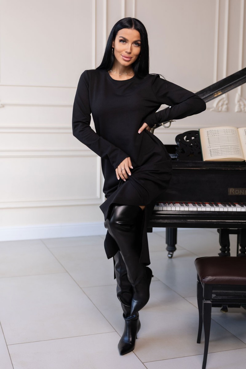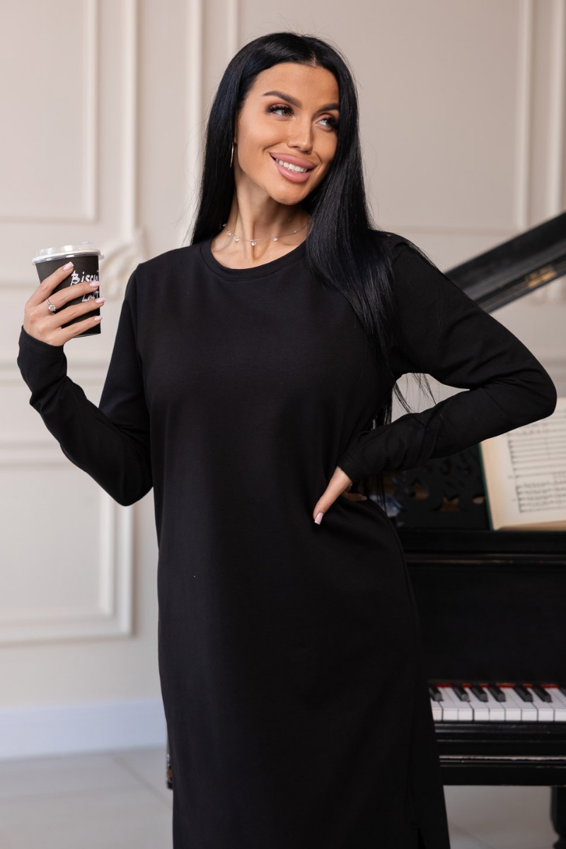 Представляем Вашему вниманию платье женское трикотажное, свободного силуэта, с боковым вырезом в нижней части. Рукав - втачной, удлиненный. Классический округлый вырез. Базовая модель, на каждый день. Отлично сидит на любом типе фигуры. Подчеркнет достоинства и скроет недостатки.