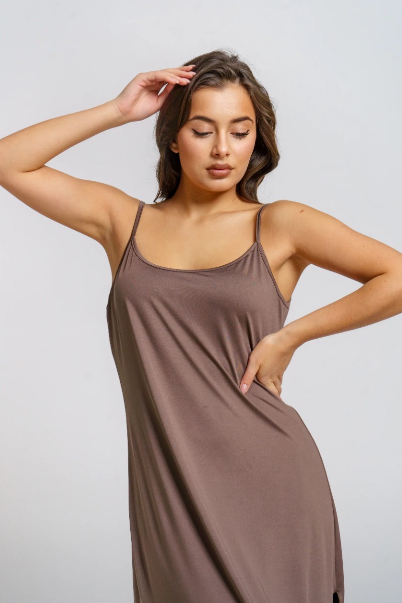 Представляем Вашему вниманию элегантную женскую сорочку из струящейся ткани “масло”. Легкая, как перышко, она струится по телу, создавая утонченный силуэт. Тонкие бретели изящно открывают плечи, а небольшие разрезы по бокам не только удобны, но и добавляют образу нотку шарма. Отделка низа “краевкой” — милая деталь, которая говорит о внимании к качеству. Что оценят ваши покупательницы: Невероятную нежность и шелковистость ткани. Идеальную посадку, которая скрывает недостатки и подчеркивает достоинства. Полное отсутствие необходимости в глажке.
