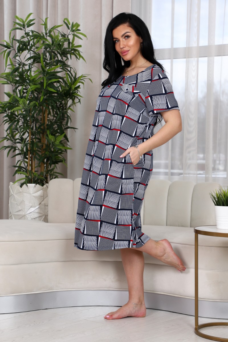 Халат женский №6101 кулирка (р-ры: 56-74) серая клетка