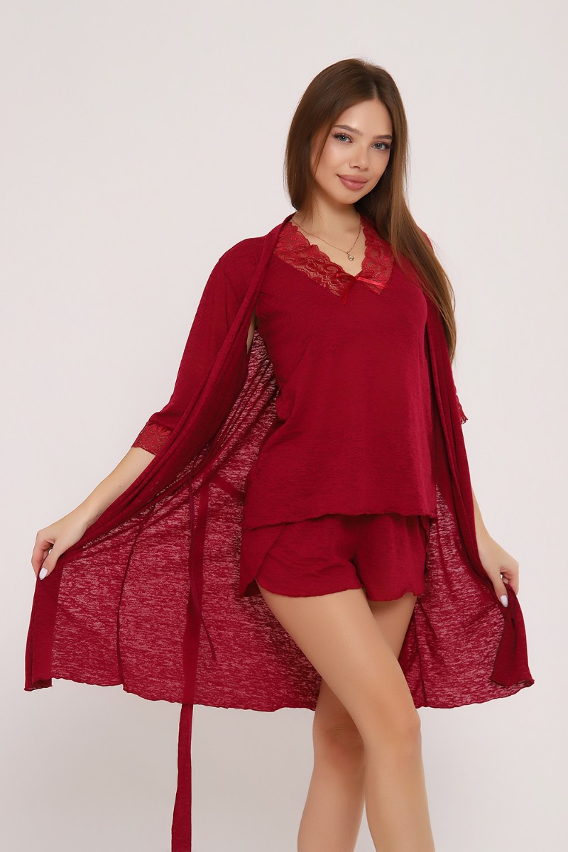 Пеньюар тройка женский №29009 деворе (р-ры: 44-54) бордовый