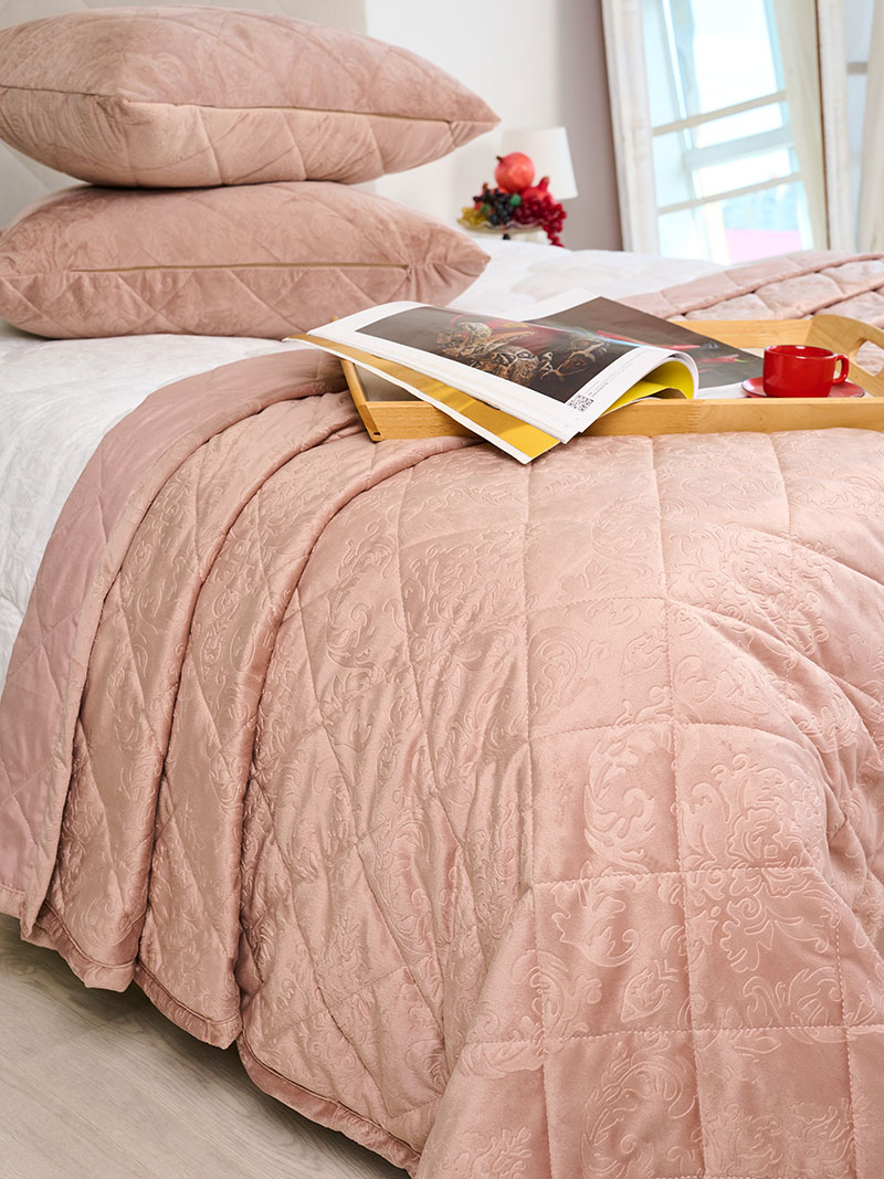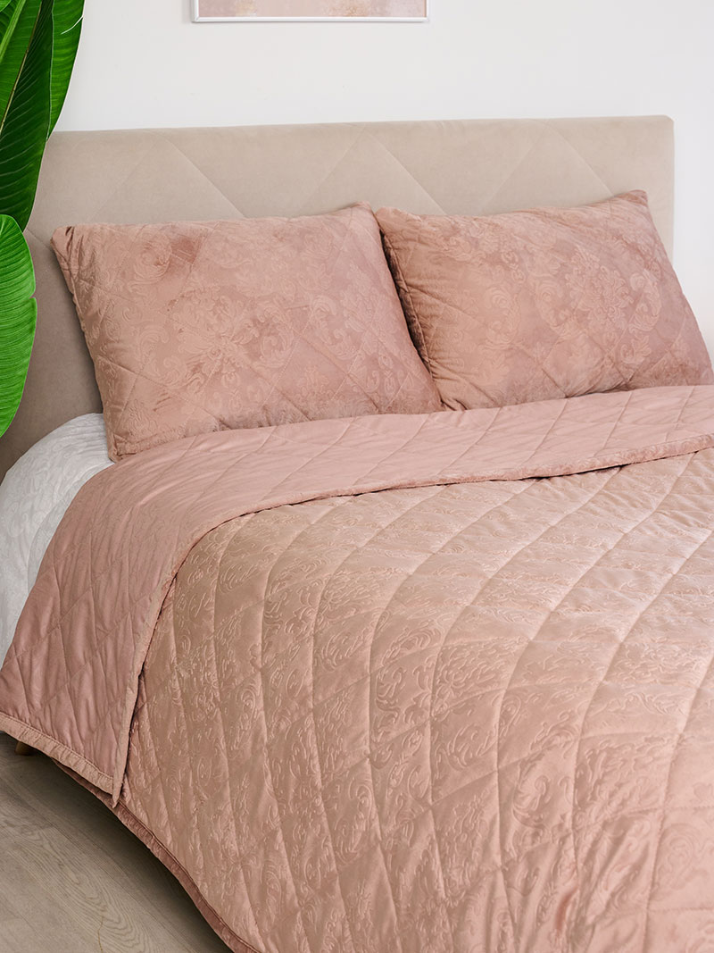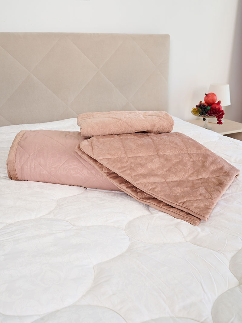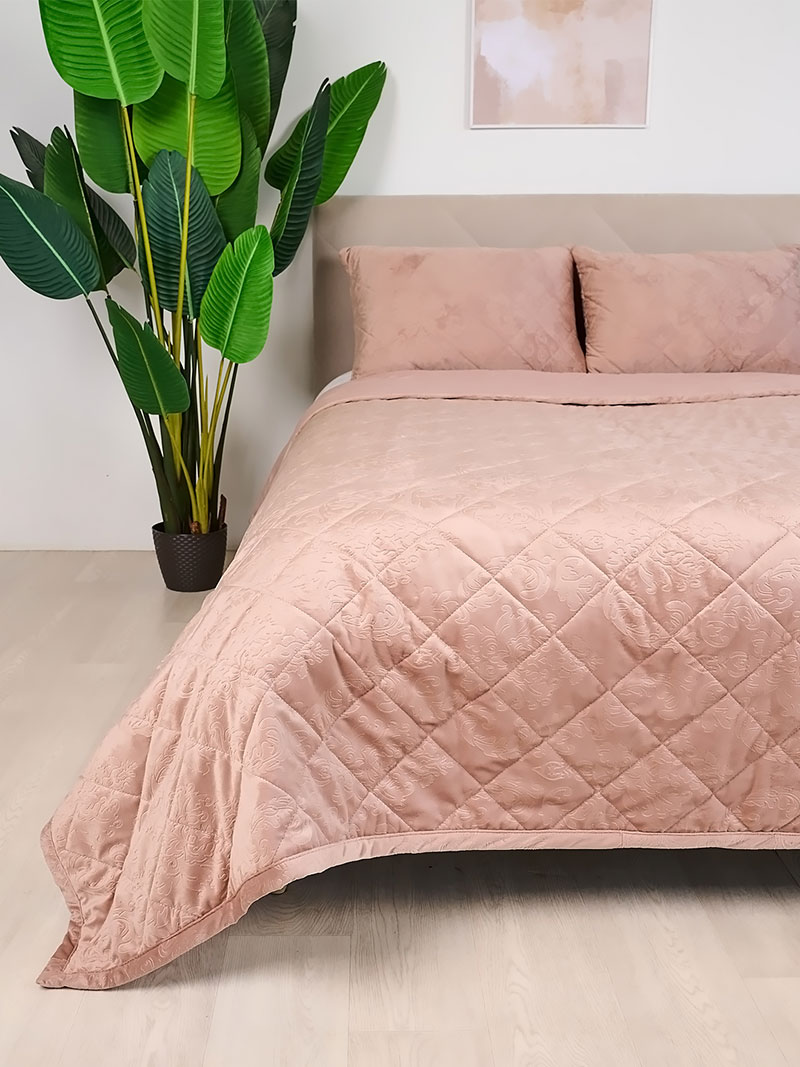 Покрывало микрофибра с велюровыми наволочками "Кристалл" пудра