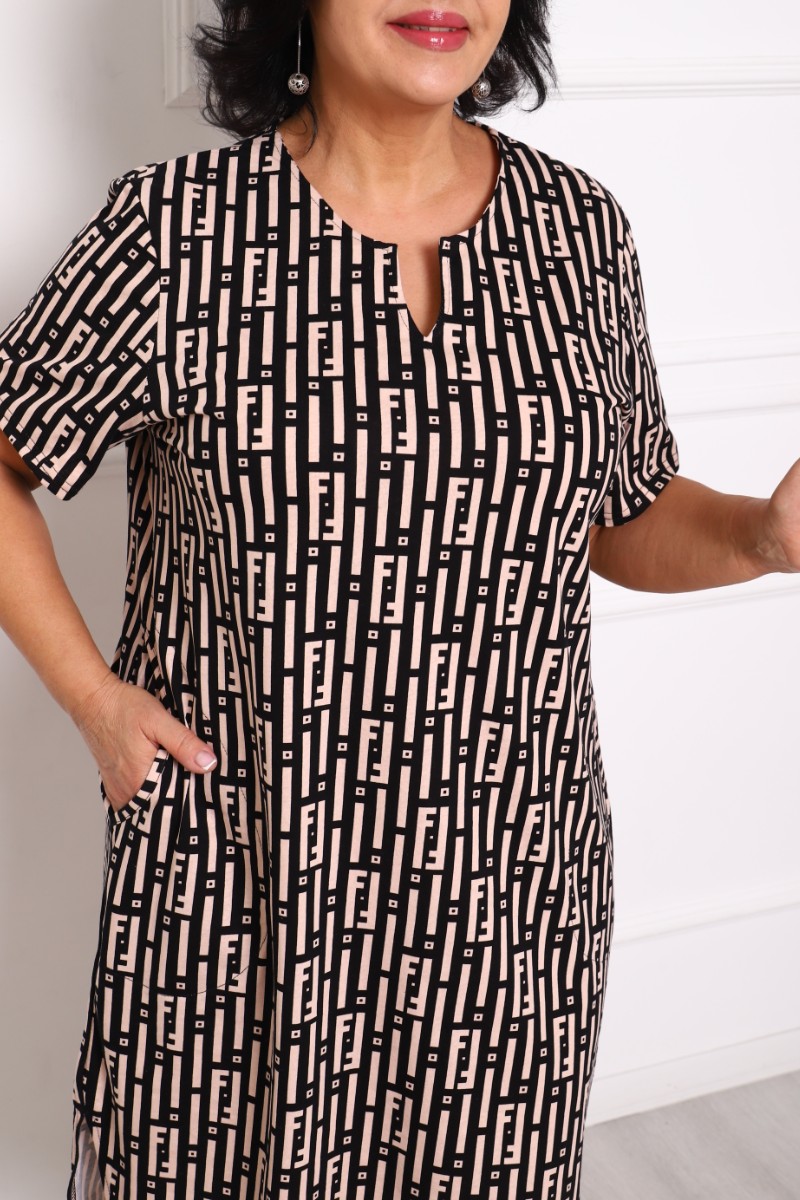 Представляем Вашему вниманию легкую женскую тунику, сшитую из 100% натурального, дышащего хлопка. Модель имеет интересную расцветку, которая красиво смотрится и поднимает настроение. Изделие хорошо сидит на фигуре и подчеркивает её достоинства. В ней Вы будете чувствовать себя комфортно и уверенно.