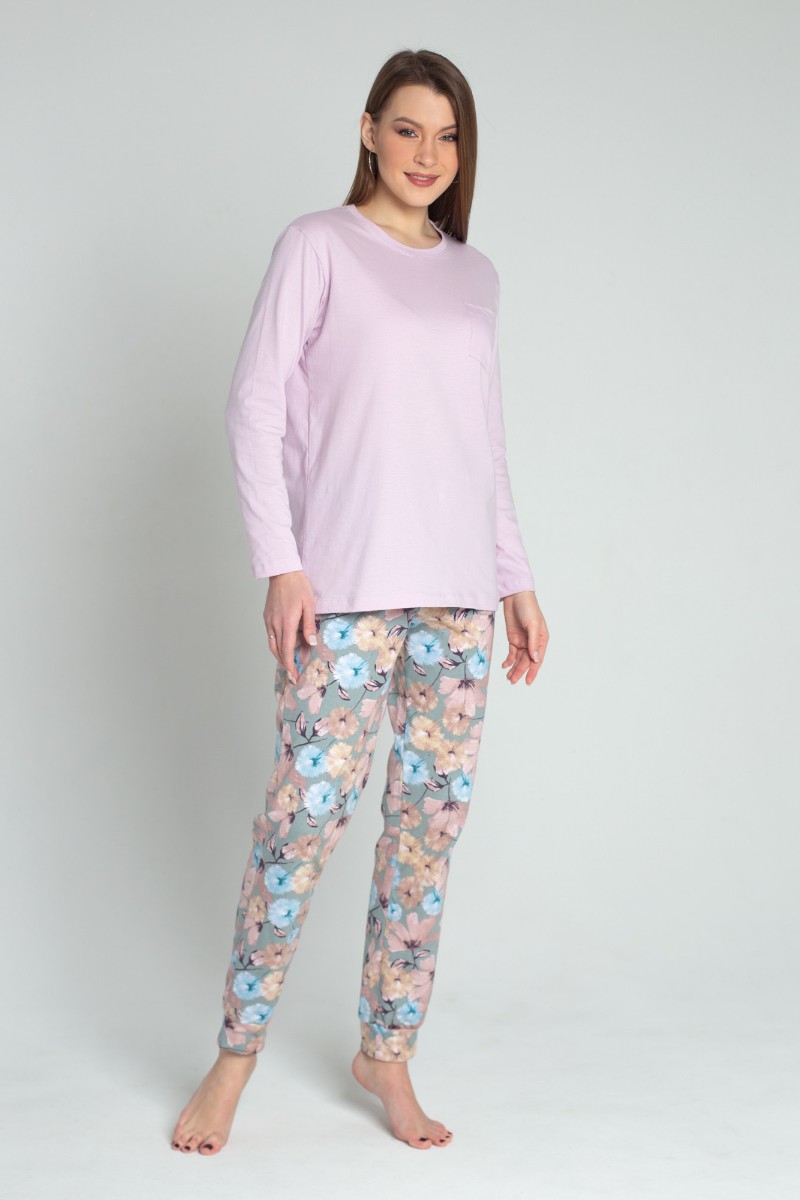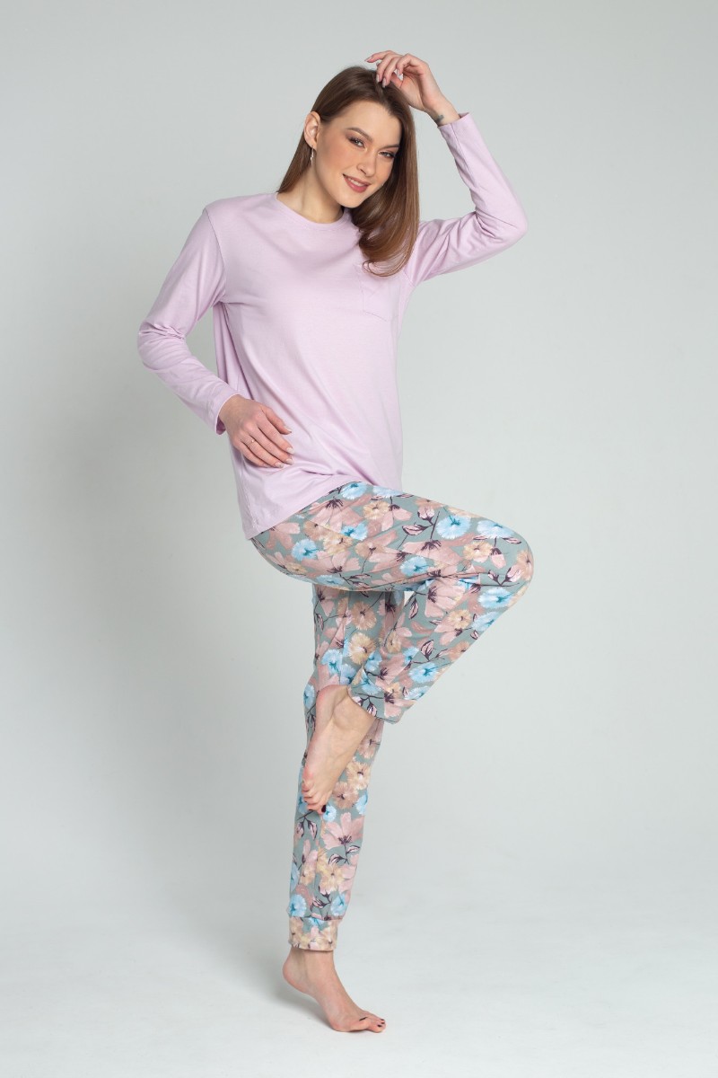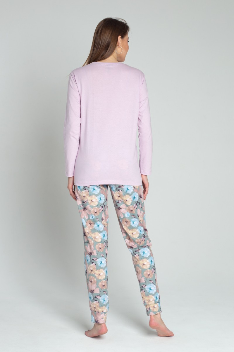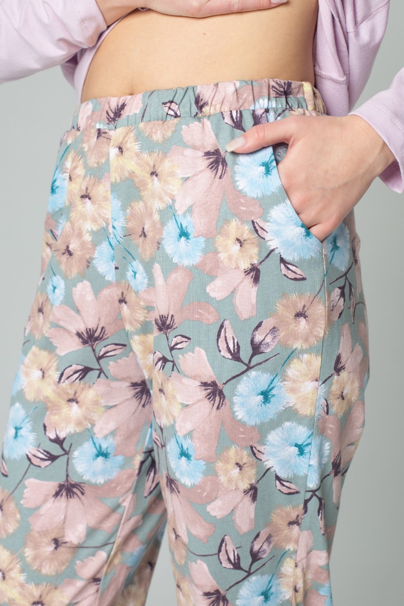 Представляем Вашему вниманию легкий женский костюм двойку для дома, сшитый из кулирки - 100% натурального, дышащего хлопка. Комплект имеет интересную расцветку, которая красиво смотрится и поднимает настроение. Костюм хорошо сидит на фигуре и подчеркивает её достоинства. В нём Вы будете чувствовать себя комфортно и уверенно.