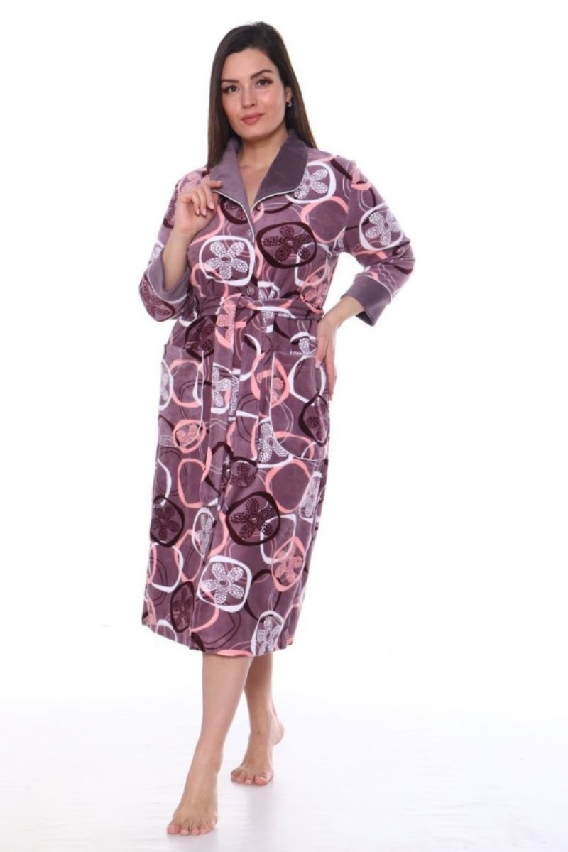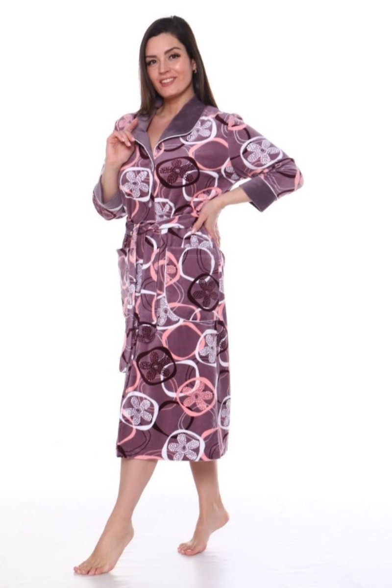 Халат женский ХВ-613 велюр (последний размер) какао с овалами 60