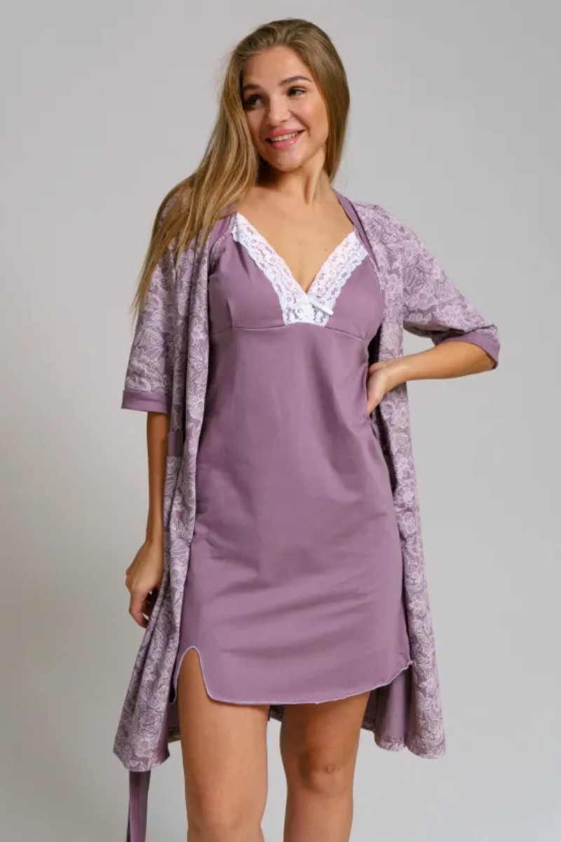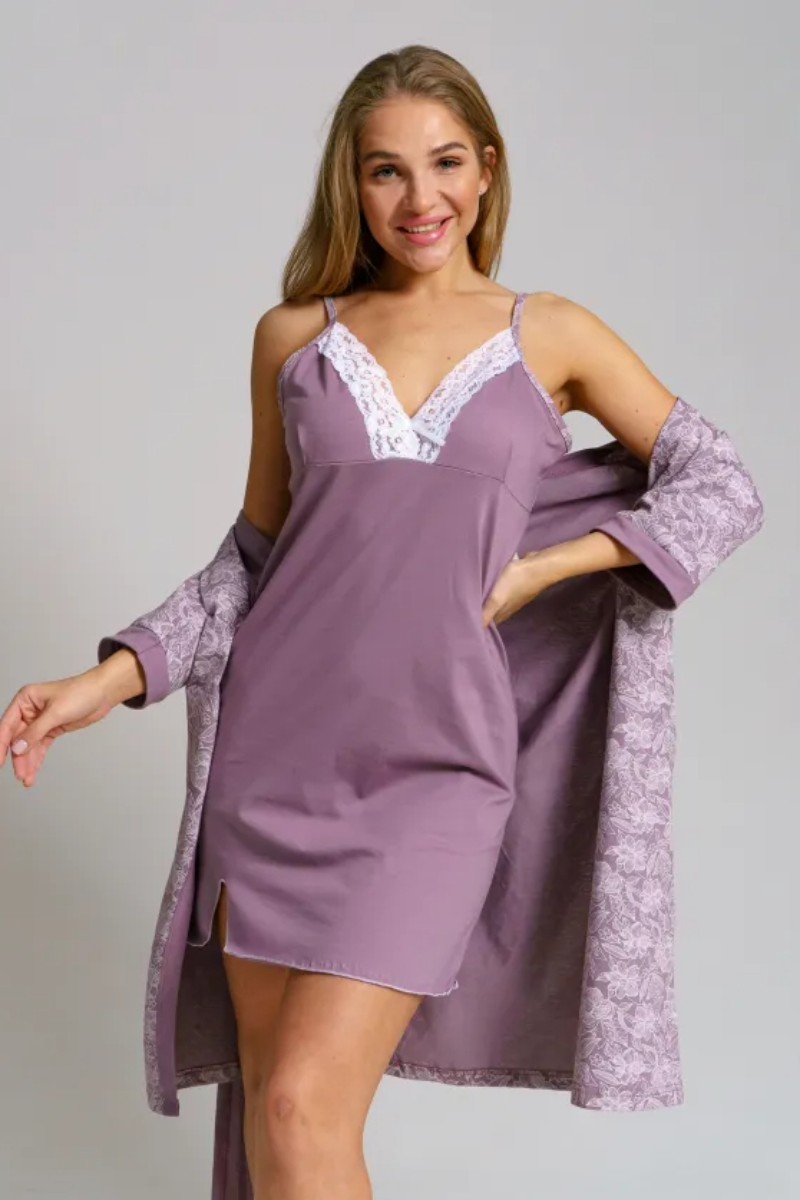 Пеньюар двойка женский "Дарья" 1222-3 кулирка (последний размер) сухая роза 52