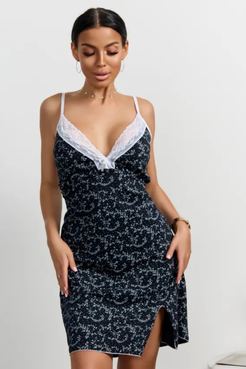 Представляем Вашему вниманию легкую женскую сорочку. Модель длиной выше колена с разрезом по низу, тонкие бретели и отделка кружевом v-образного выреза, который придают образу женственности. В этой сорочке Ваш сон будет максимально приятным и расслабляющим.