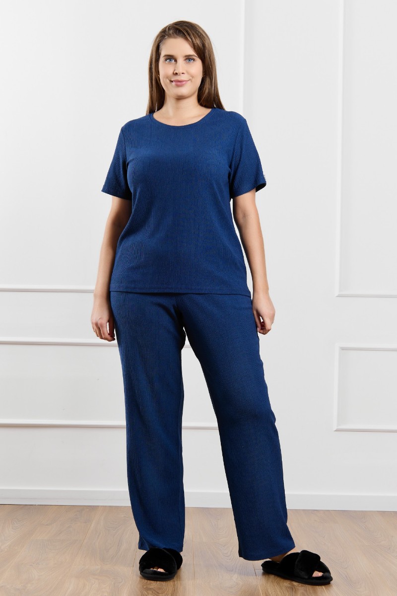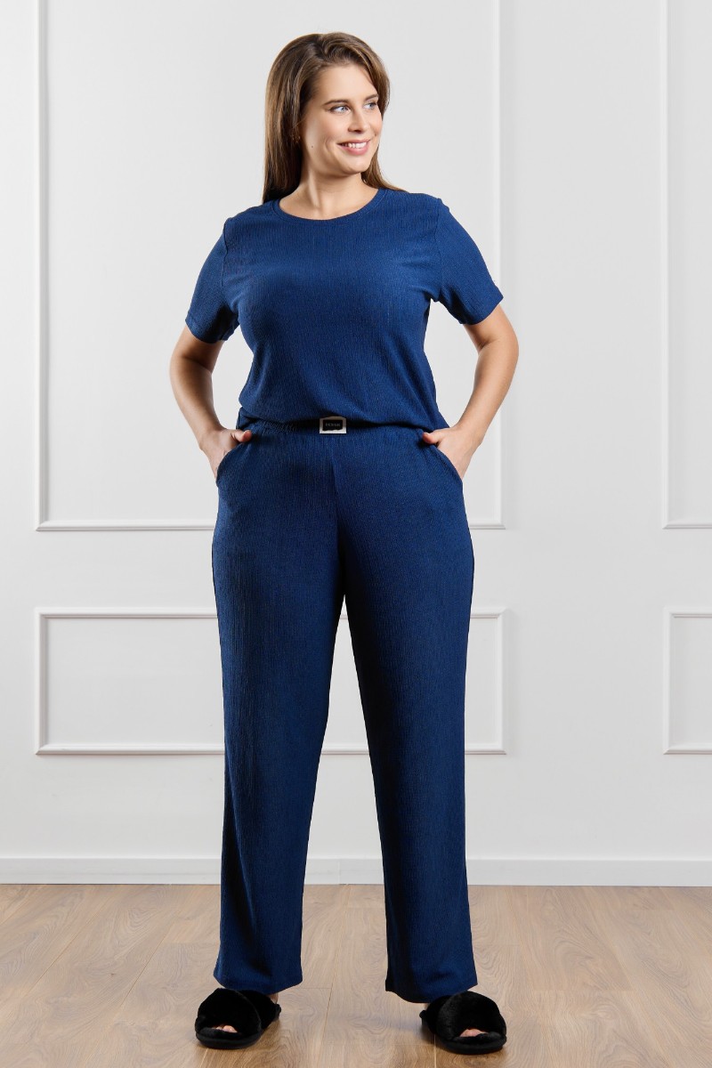 Брюки женские "Рената-2" фактурный трикотаж (р-ры: 50-60) синий