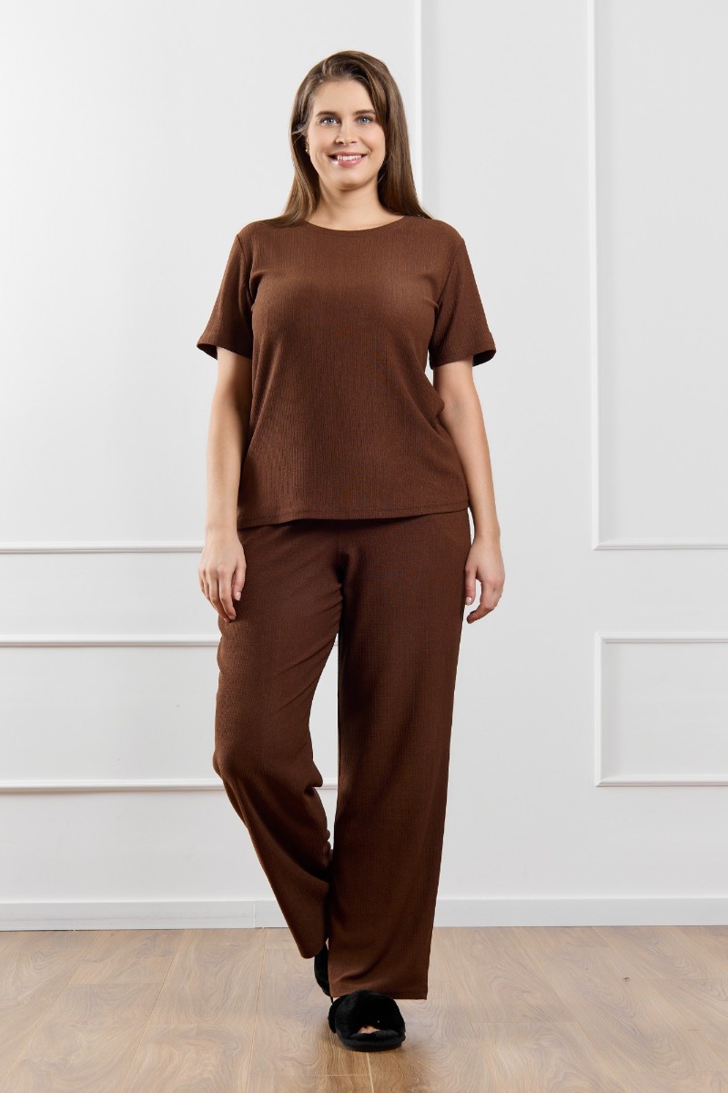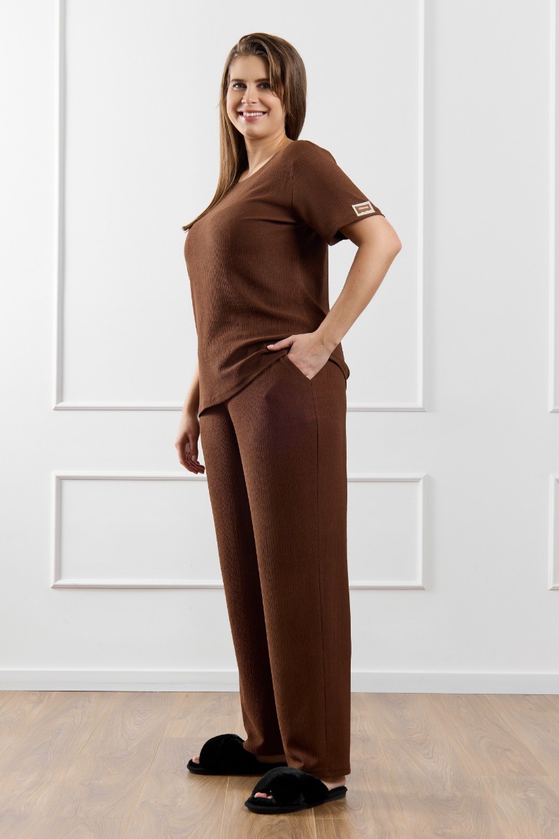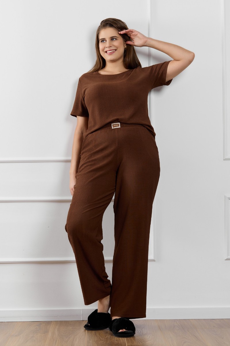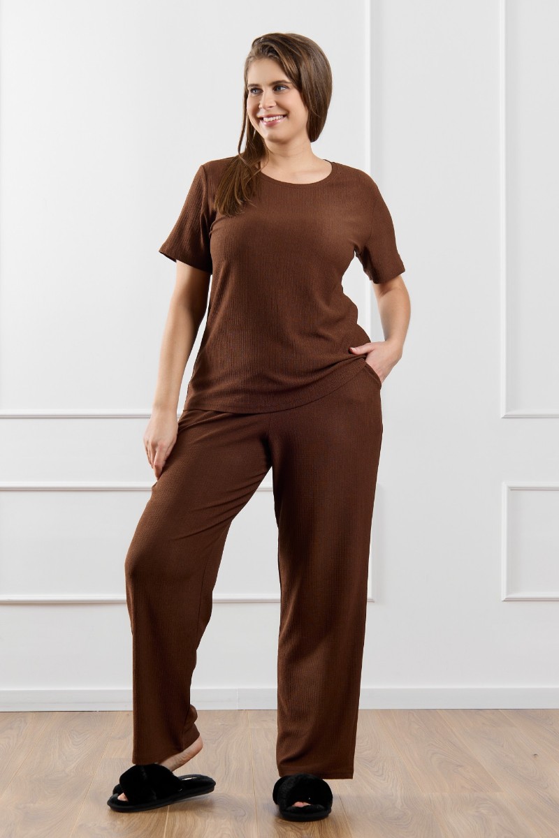 Брюки женские "Рената-2" фактурный трикотаж (р-ры: 50-60) коричневый