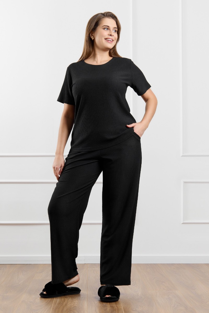 Брюки женские "Рената-2" фактурный трикотаж (р-ры: 50-60) черный