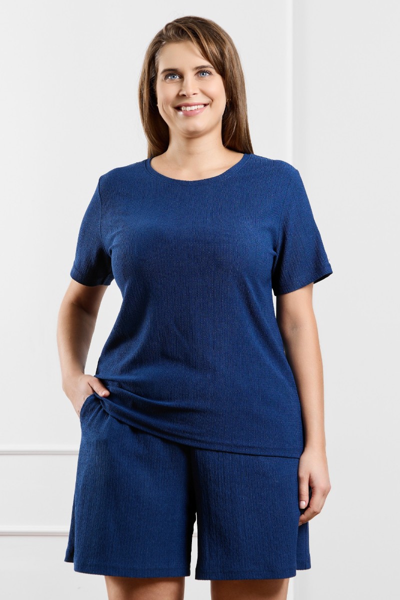 Шорты женские "Рената-3" фактурный трикотаж (р-ры: 48-58) синий