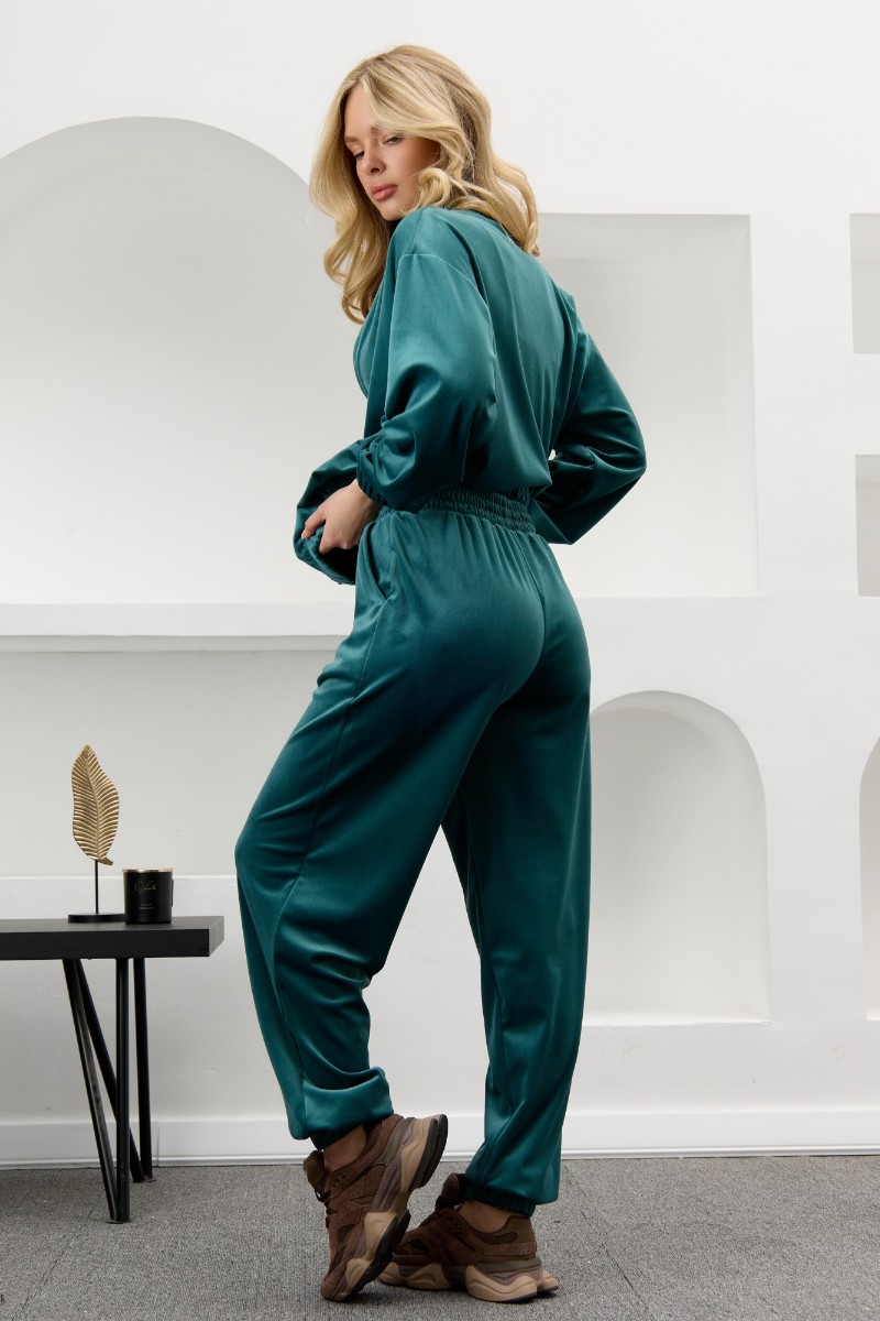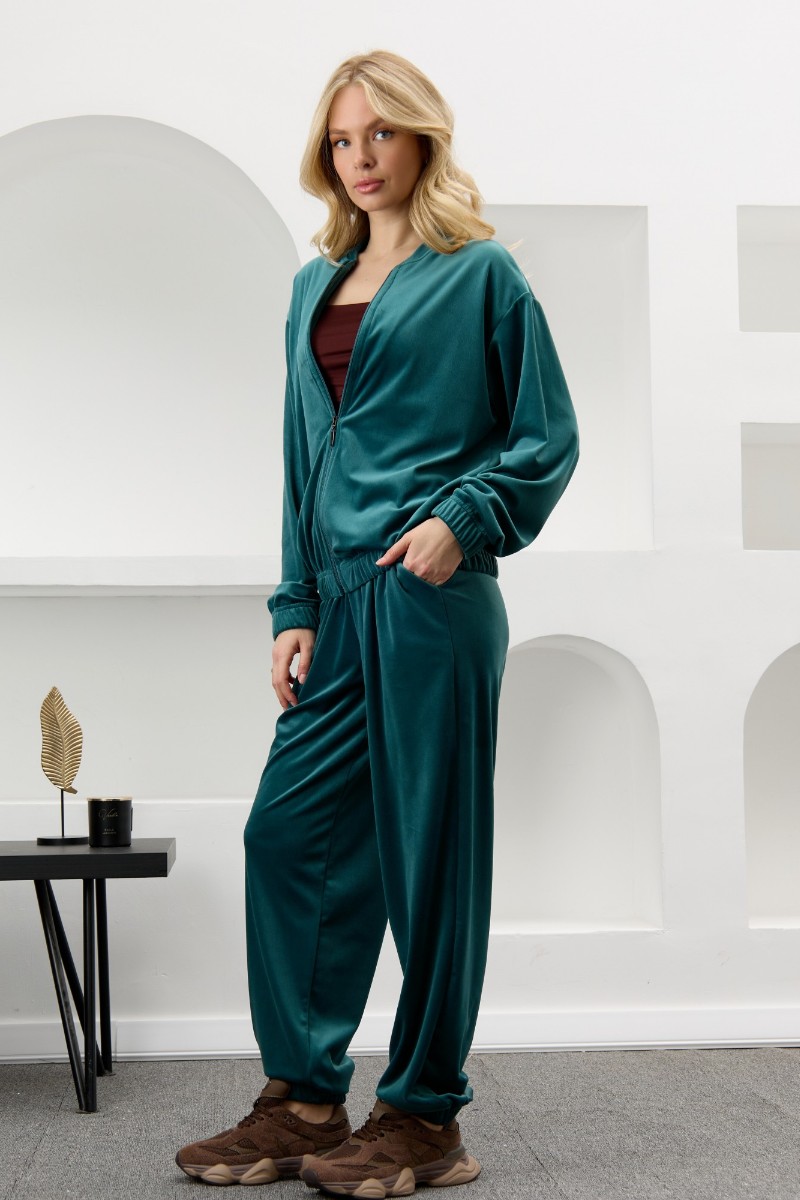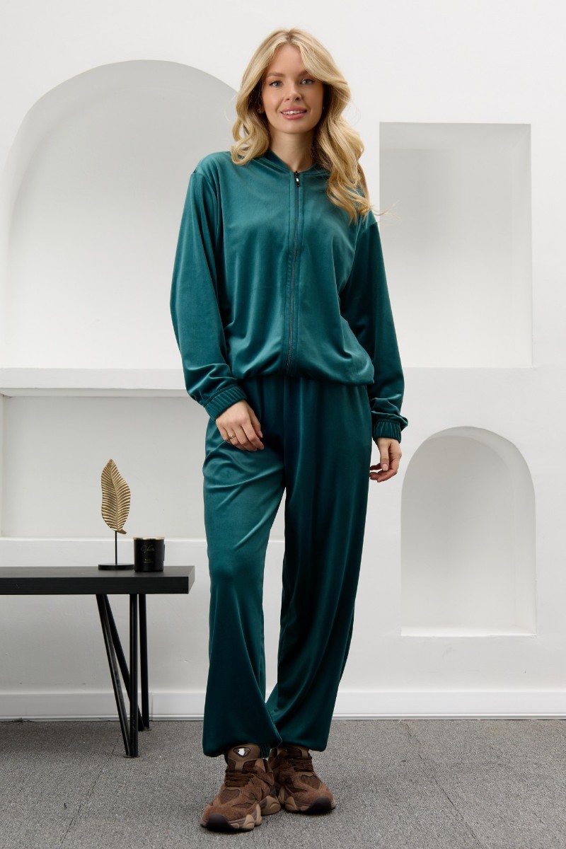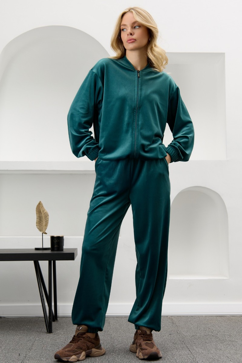 Костюм двойка женский "Альба" велюр стрейч (р-ры: 44-54) изумрудный