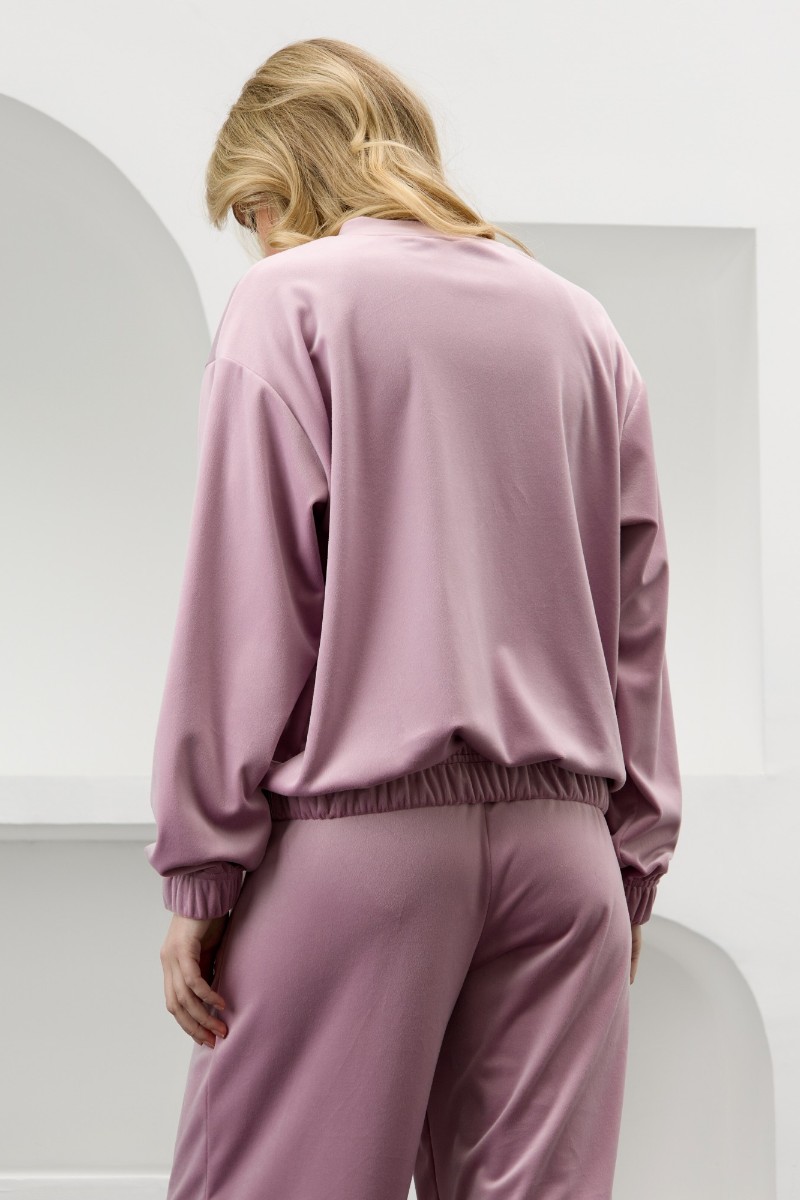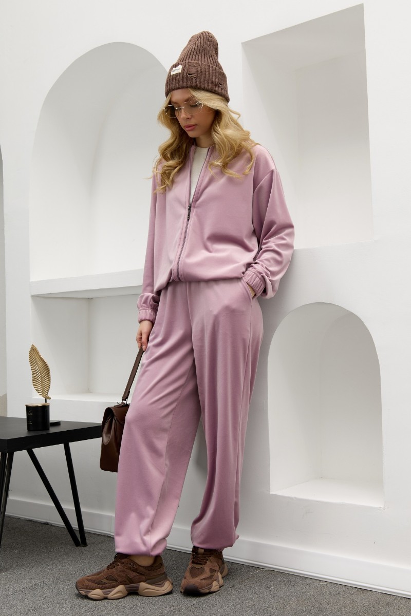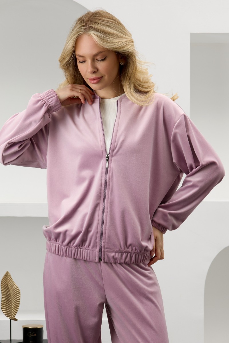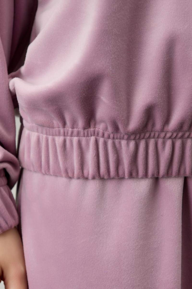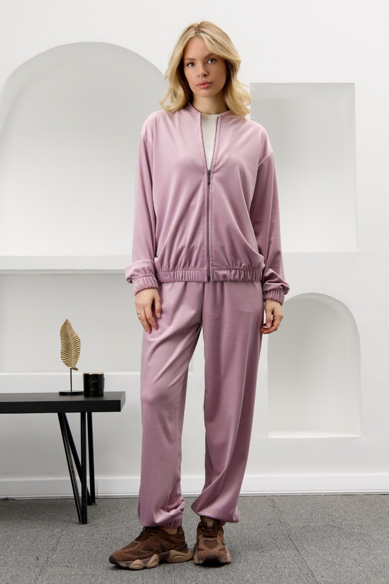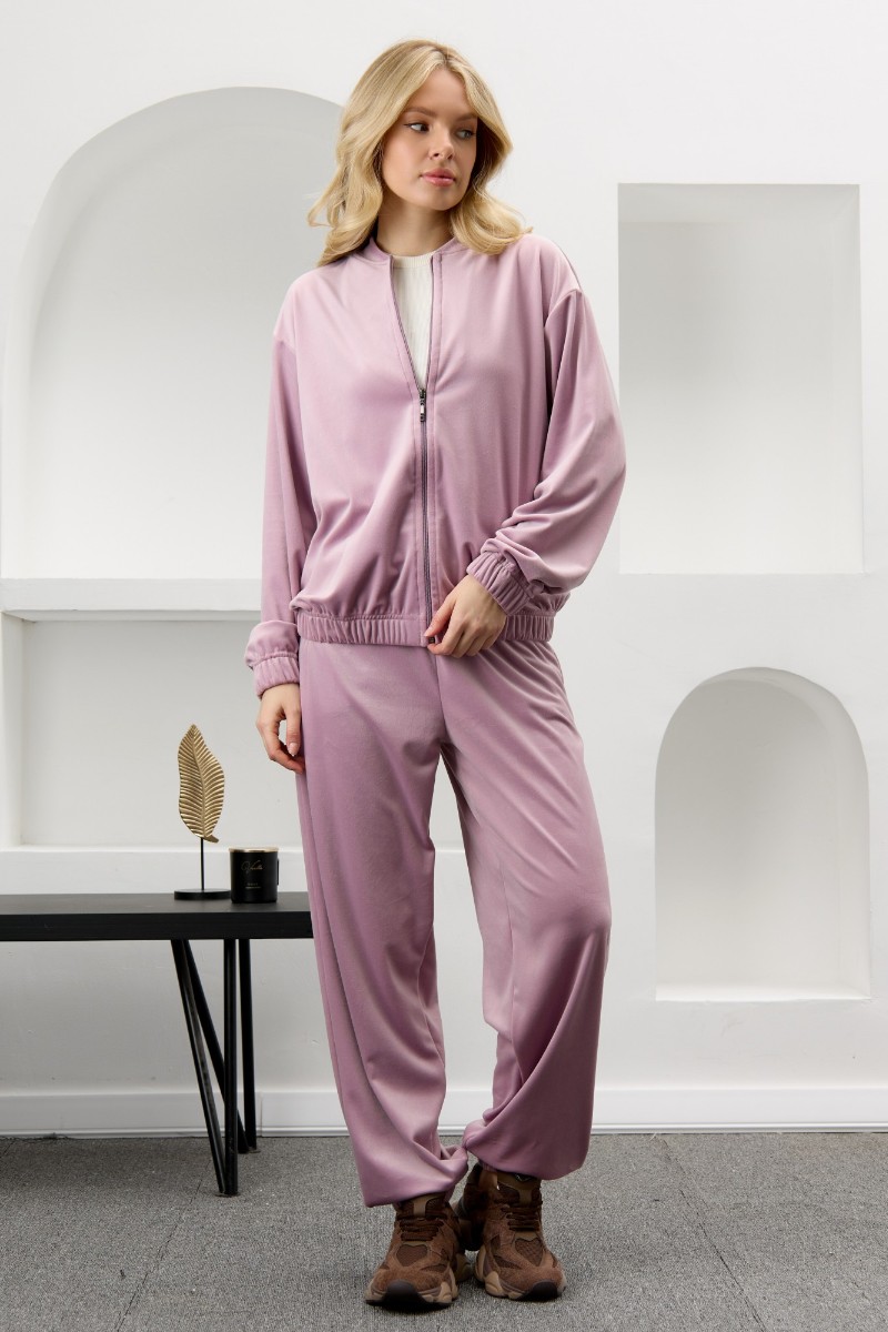 Представляем Вашему вниманию костюм молодежный из гладкокрашенного полотна «велюр-стрейч», Куртка-бомбер прямого силуэта, свободная, с длинными втачными рукавами, горловиной овальной формы, обработанной втачной планкой, центральной бортовой застежкой на тесьму «молния». Низ изделия и нижние срезы рукавов обработаны подгибкой с вложением широкой эластичной тесьмы.Брюки – длинные, с карманами в боковых швах, на притачном поясе с эластичной тесьмой внутри. Нижние срезы обработаны подгибкой с вложением эластичной тесьмы.