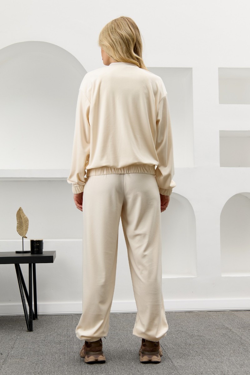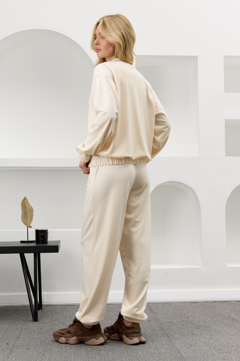 Костюм двойка женский "Альба" велюр стрейч (р-ры: 44-54) молочный
