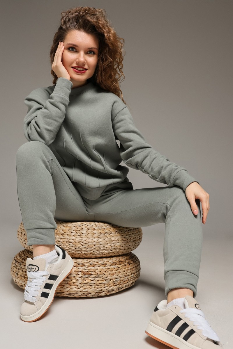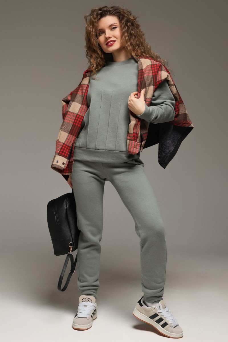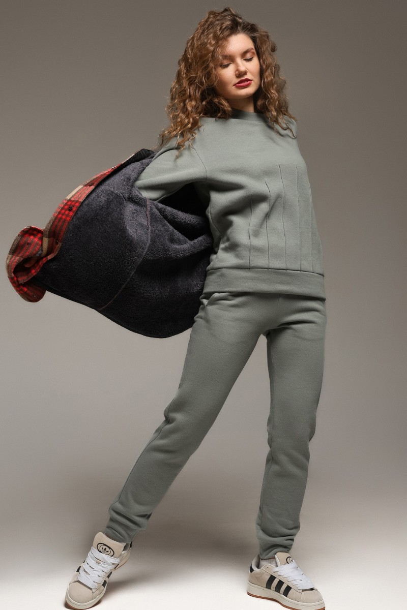 Костюм двойка женский "Либерти-2" футер 3-х нитка с начесом (р-ры: 42-52) серо-зеленый