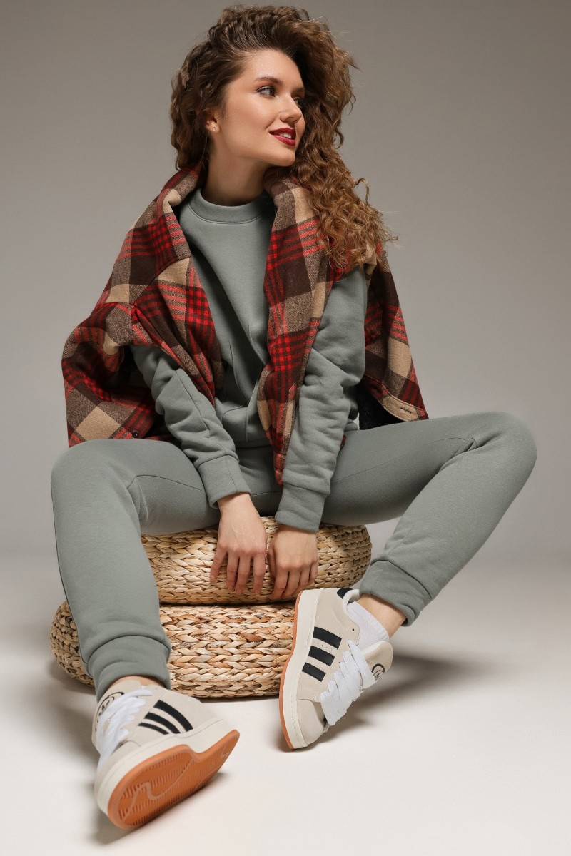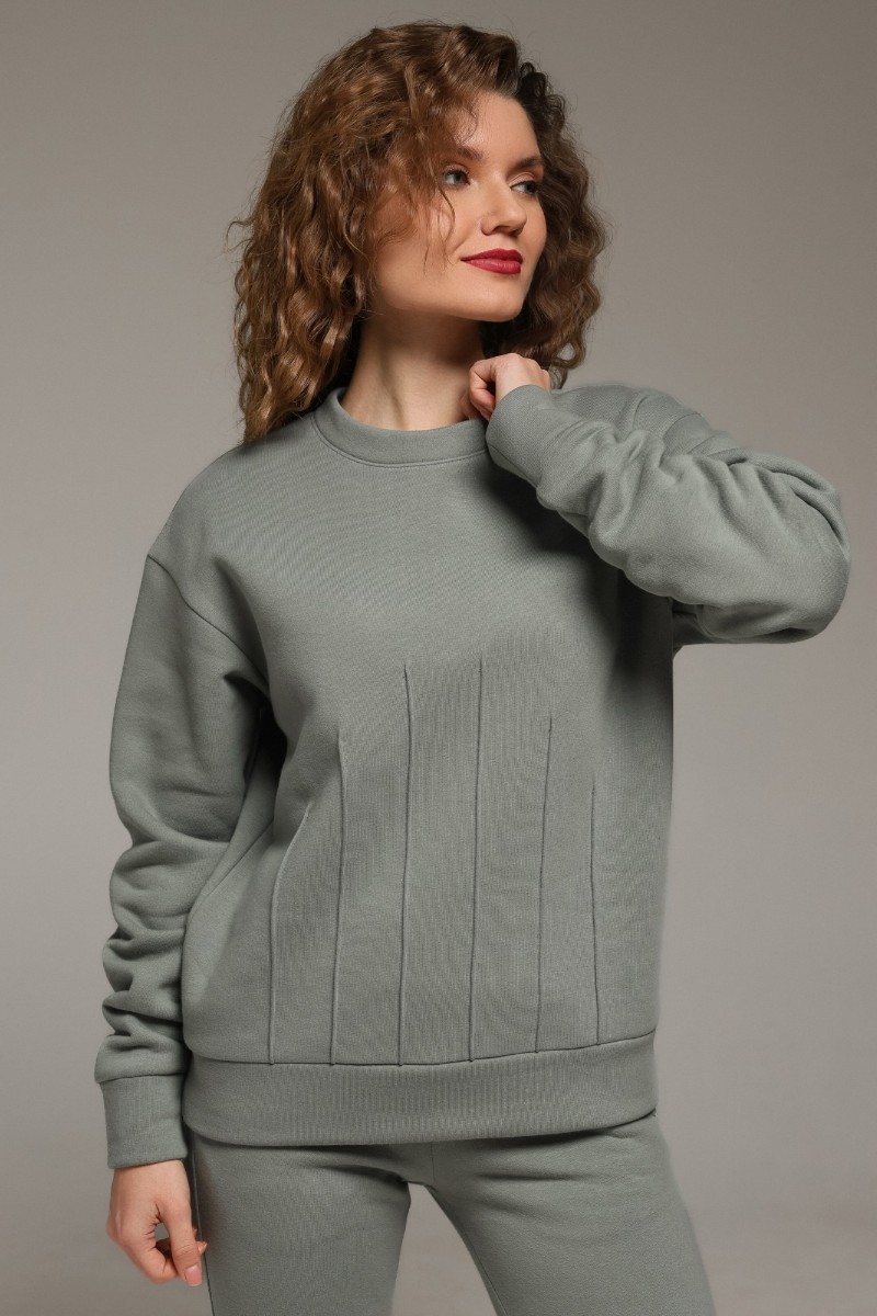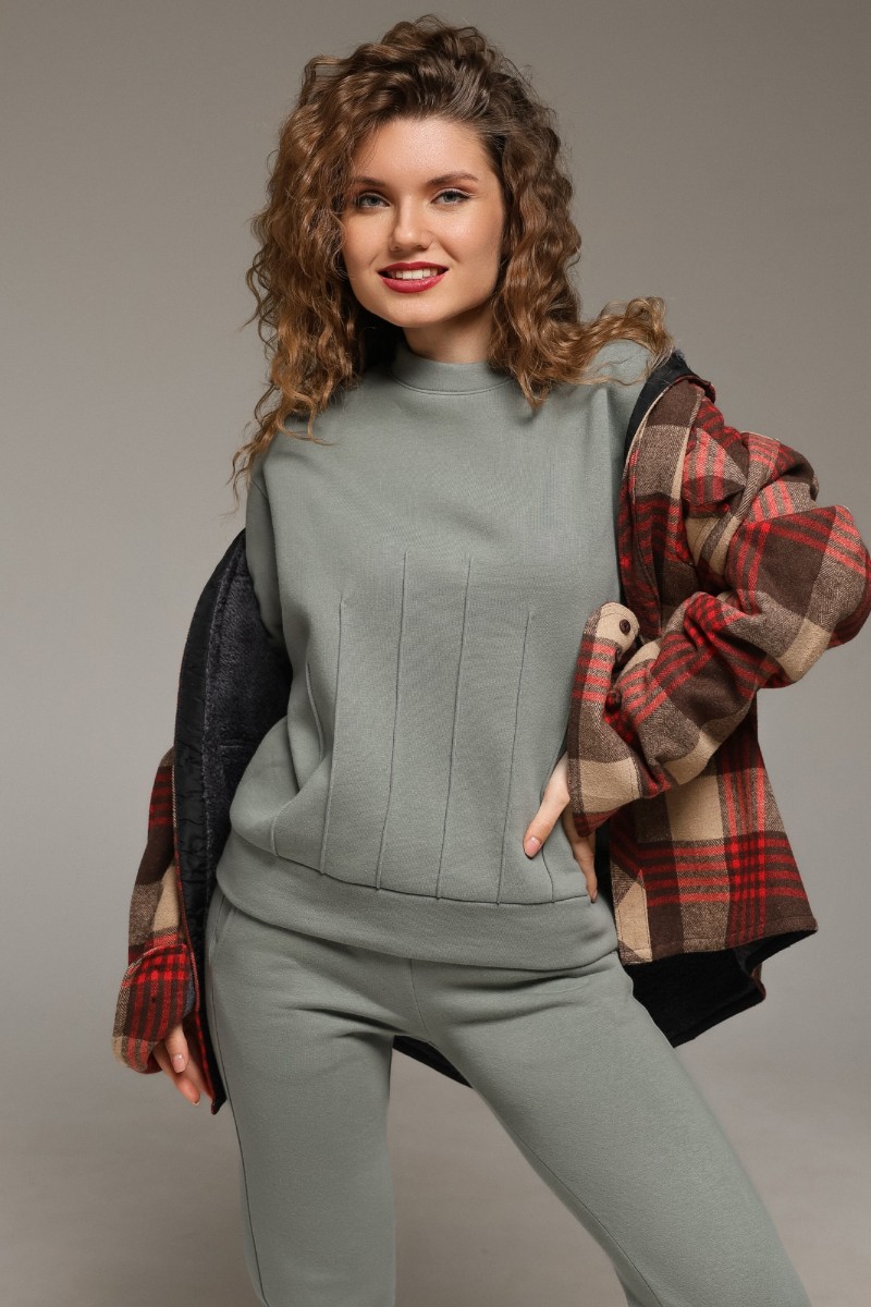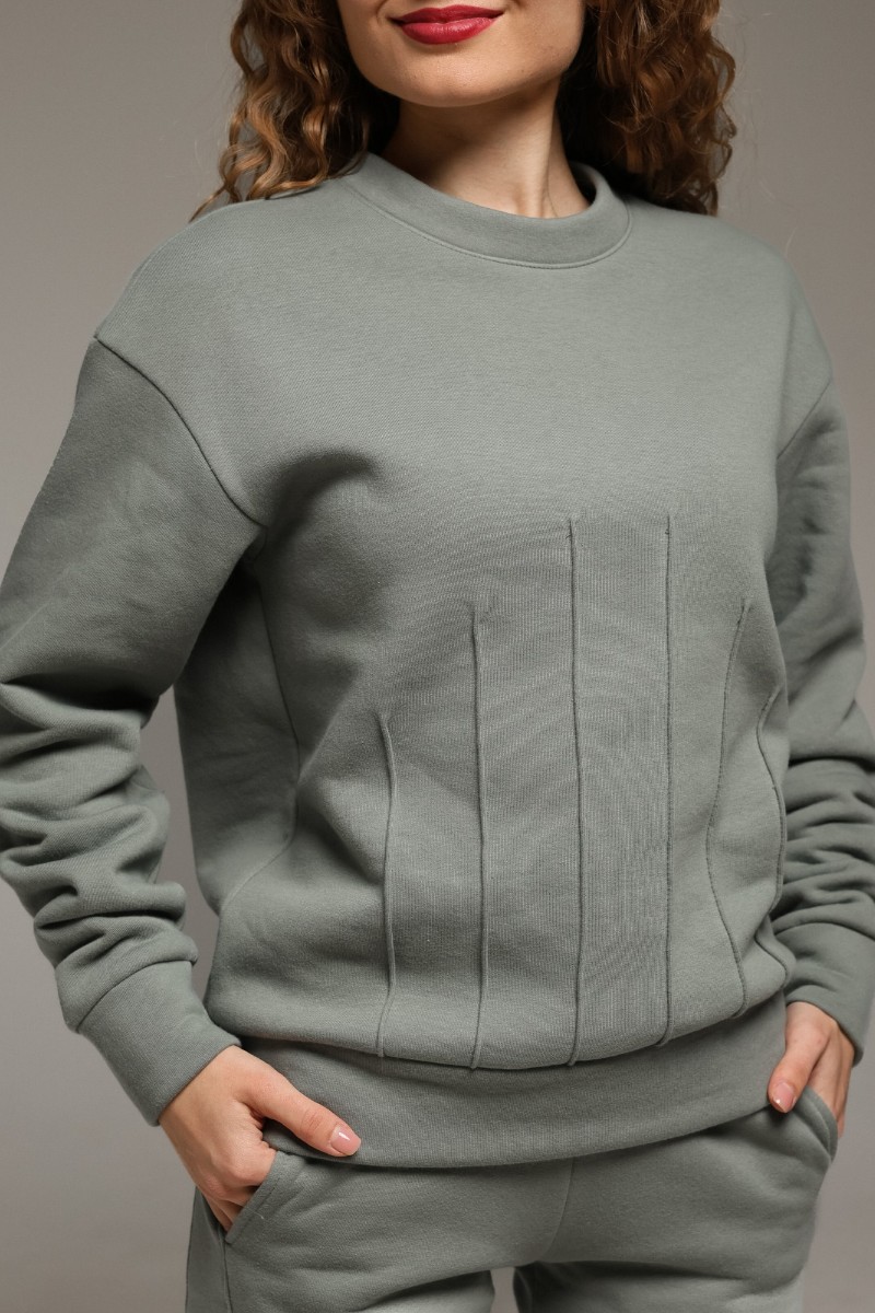 Костюм двойка женский "Либерти-2" футер 3-х нитка с начесом (р-ры: 42-52) серо-зеленый