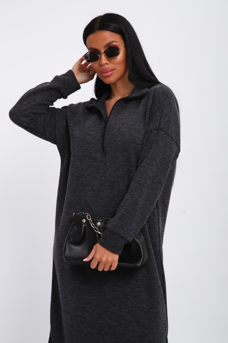 Представляем Вашему вниманию теплое женское платье, которое согреет Вас в прохладное время года. Высокий воротник на молнии поможет отрегулировать линию декольте. Прямой крой позволяет носить платье как с поясом, так и без него. Два разреза по бокам добавят в образ загадочность, что обязательно привлечет к Вам внимание и не оставит без комплиментов!