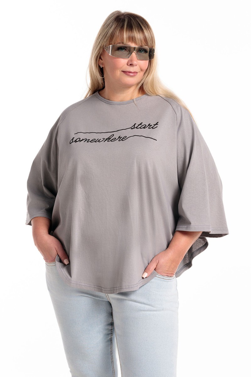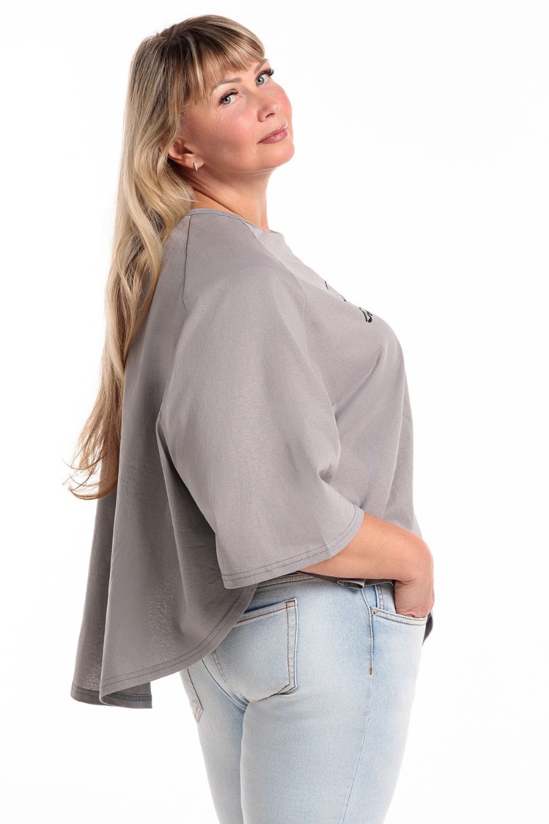 Пончо-туника женская №057913 кулирка (р-ры: 46-64) сер.печать