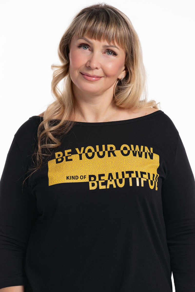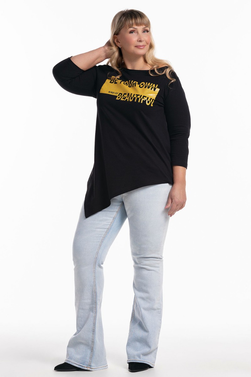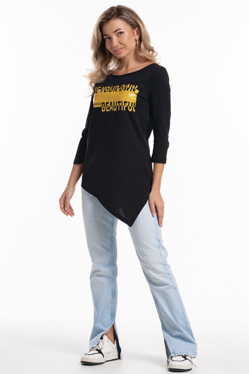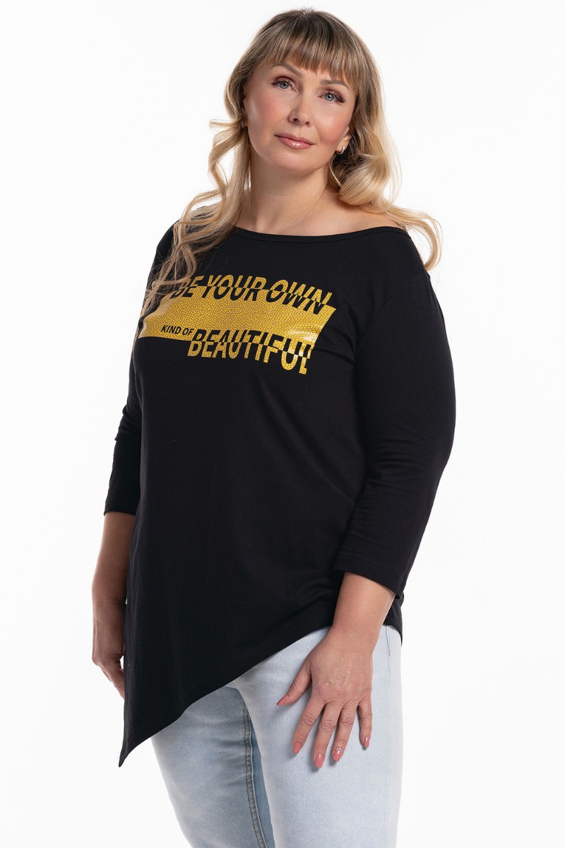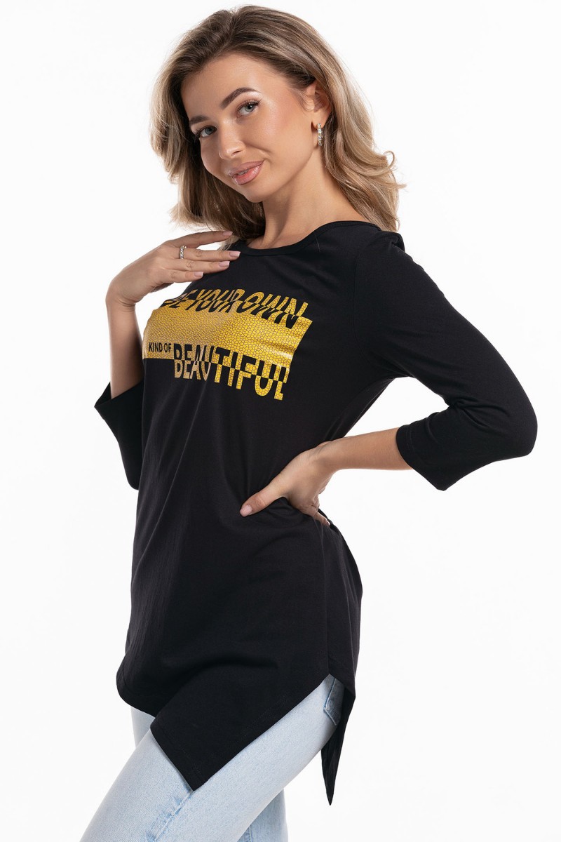 Туника женская №057907 "Т-хвост" кулирка (р-ры: 46-60) черно-золотой
