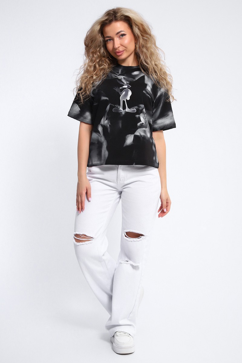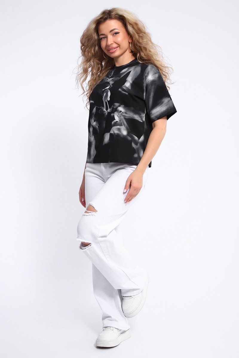 Футболка женская №74377 футер с лайкрой 2-х нитка (р-ры: 46-52) черный