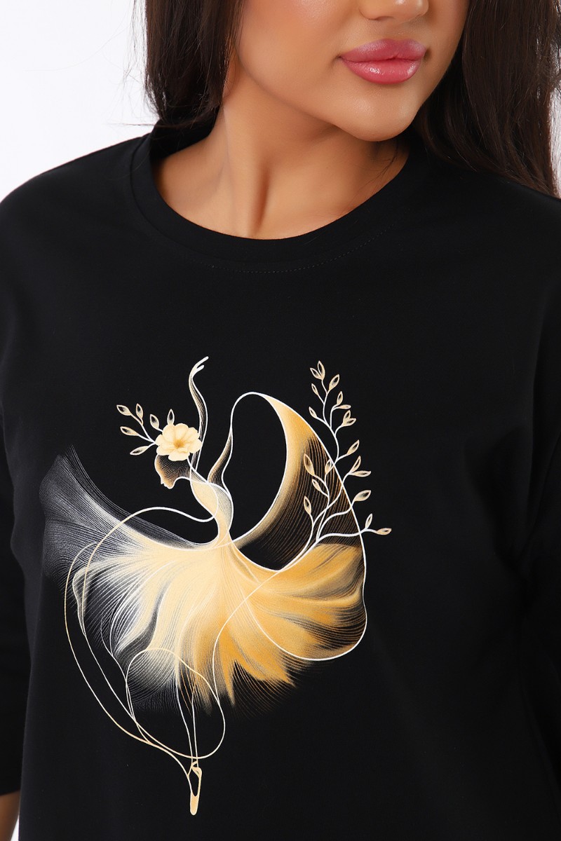 Представляем Вашему вниманию стильный, женский лонгслив - футболка с рукавом 3/4, изготовлена из гладкого трикотажного полотна с оригинальным принтом, разнообразит ваш ежедневный образ. Футболка будет хорошим дополнением к джинсам, брюкам. Рукав 3/4 очень актуален в любую погоду!