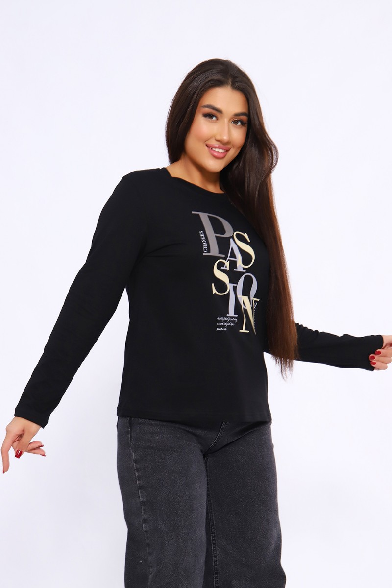 Лонгслив женский ЛЖ094 кулирка (р-ры: 44-58) черный