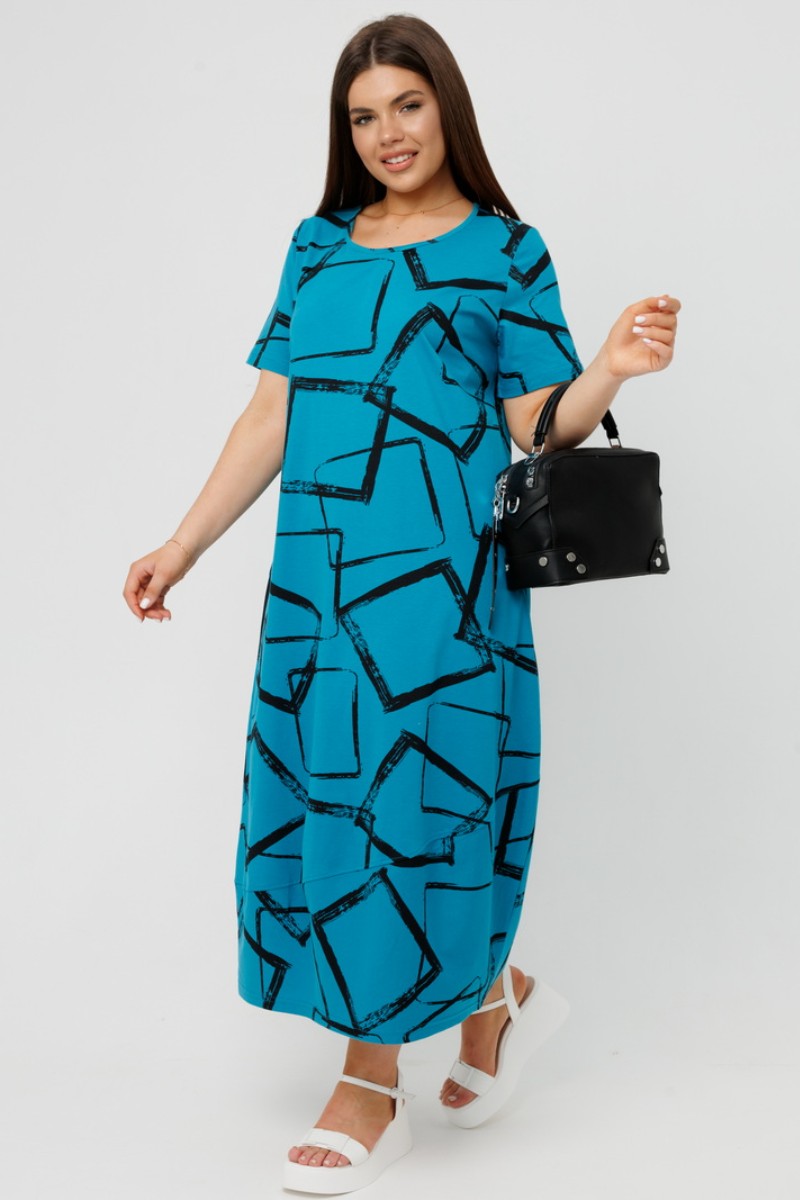 Платье женское П168 кулирка (последний размер) бирюзовый ромб 50,58,62