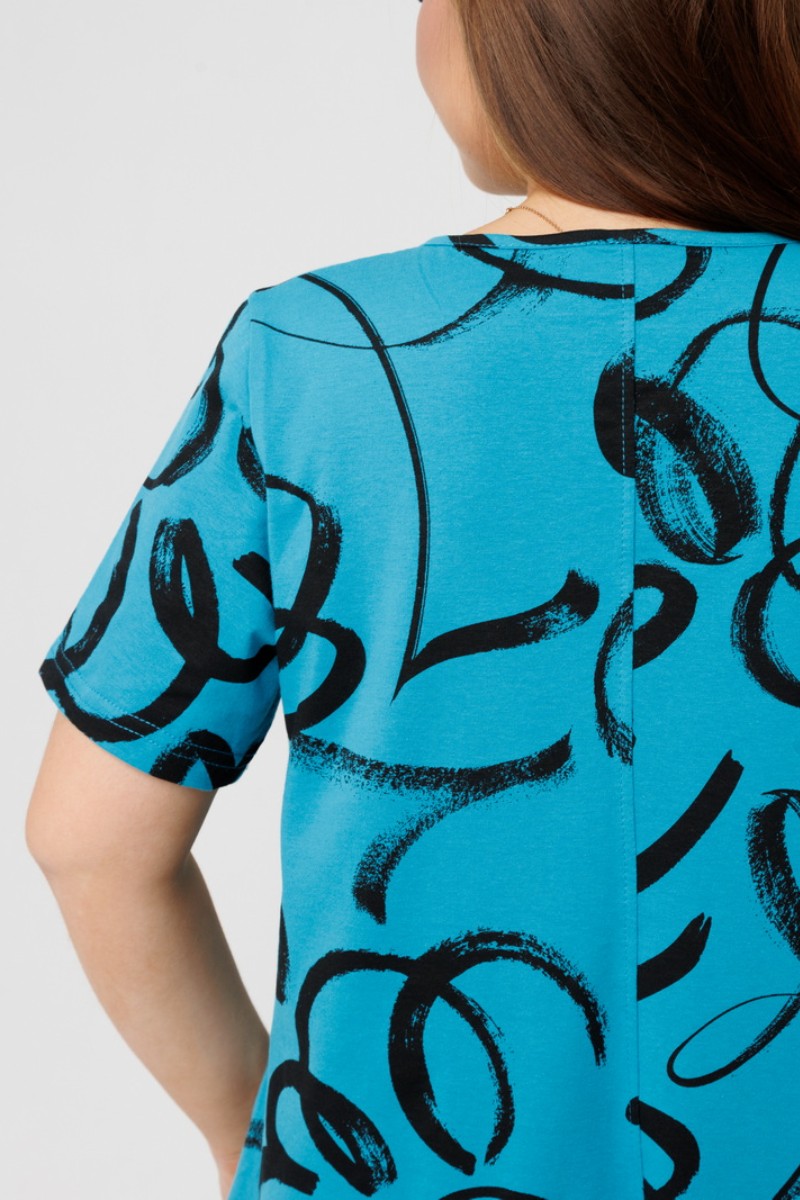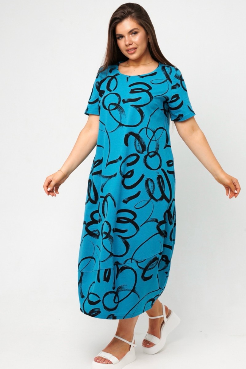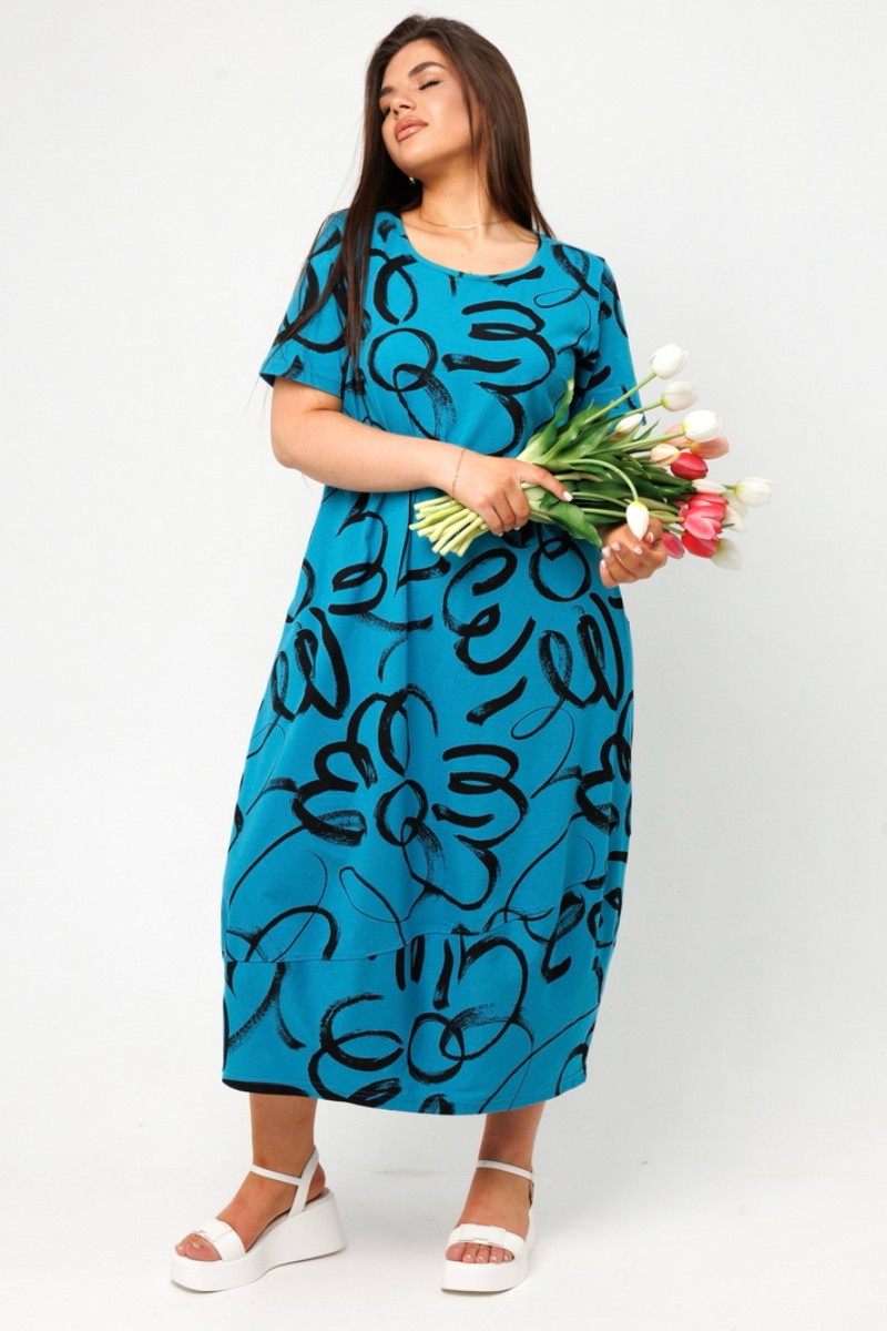Платье женское П168 кулирка (последний размер) бирюзовая ромашка 50