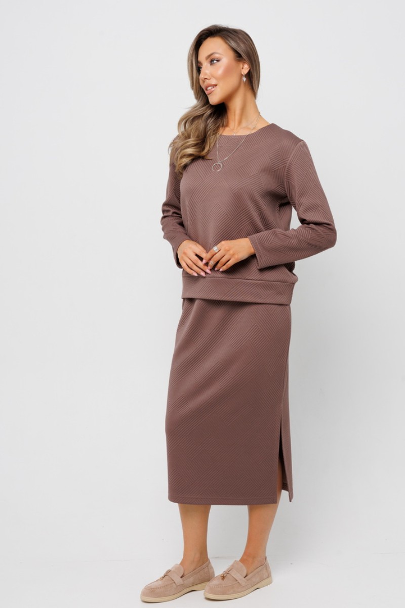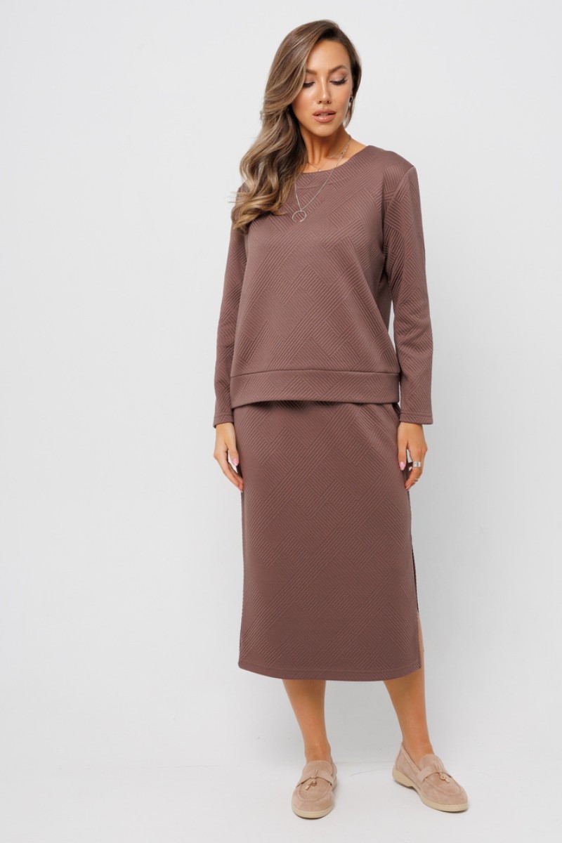 Костюм двойка женский с юбкой К245 трикотажное полотно глория (последний размер) мокко 62