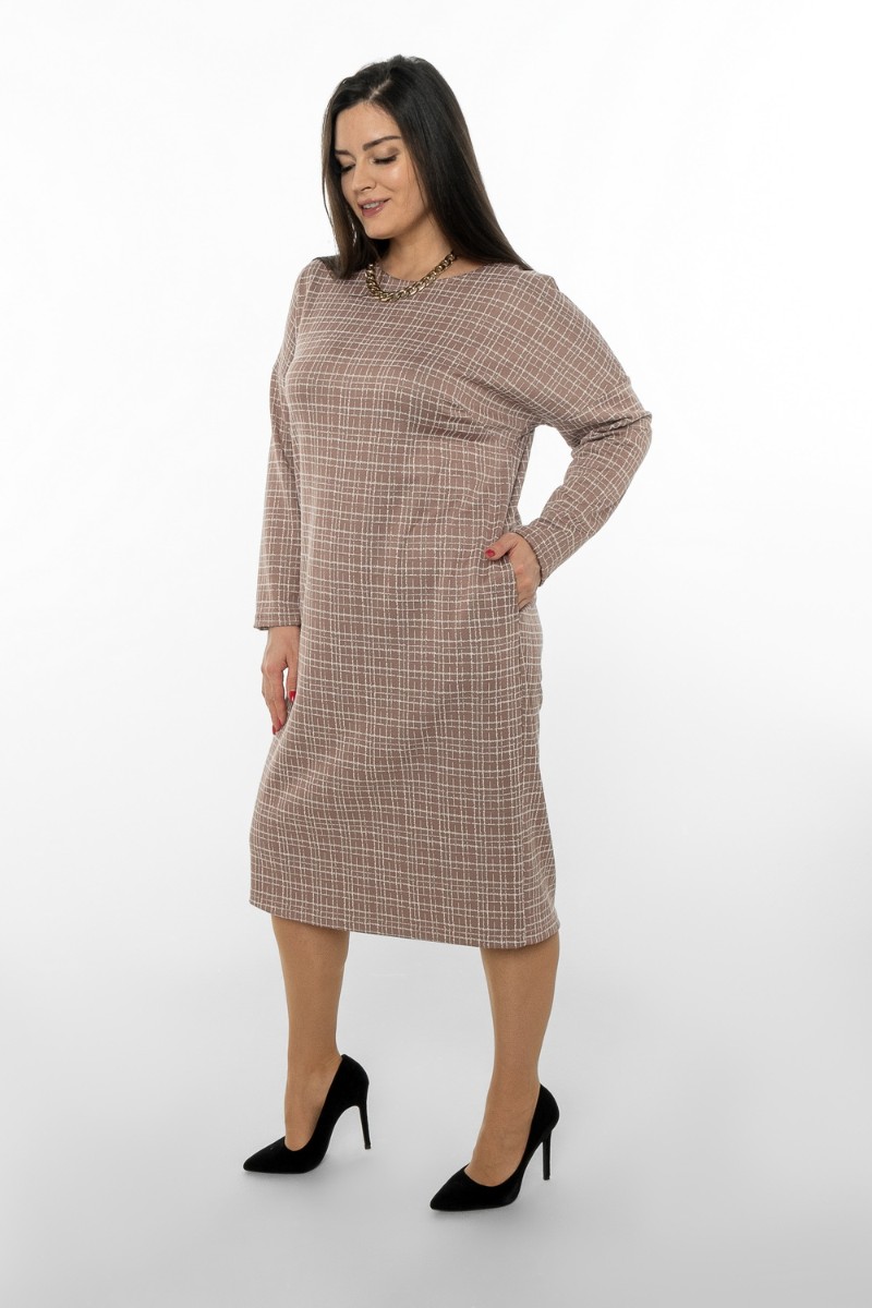 Платье женское П-177 жаккард принт (последний размер) пудра 52