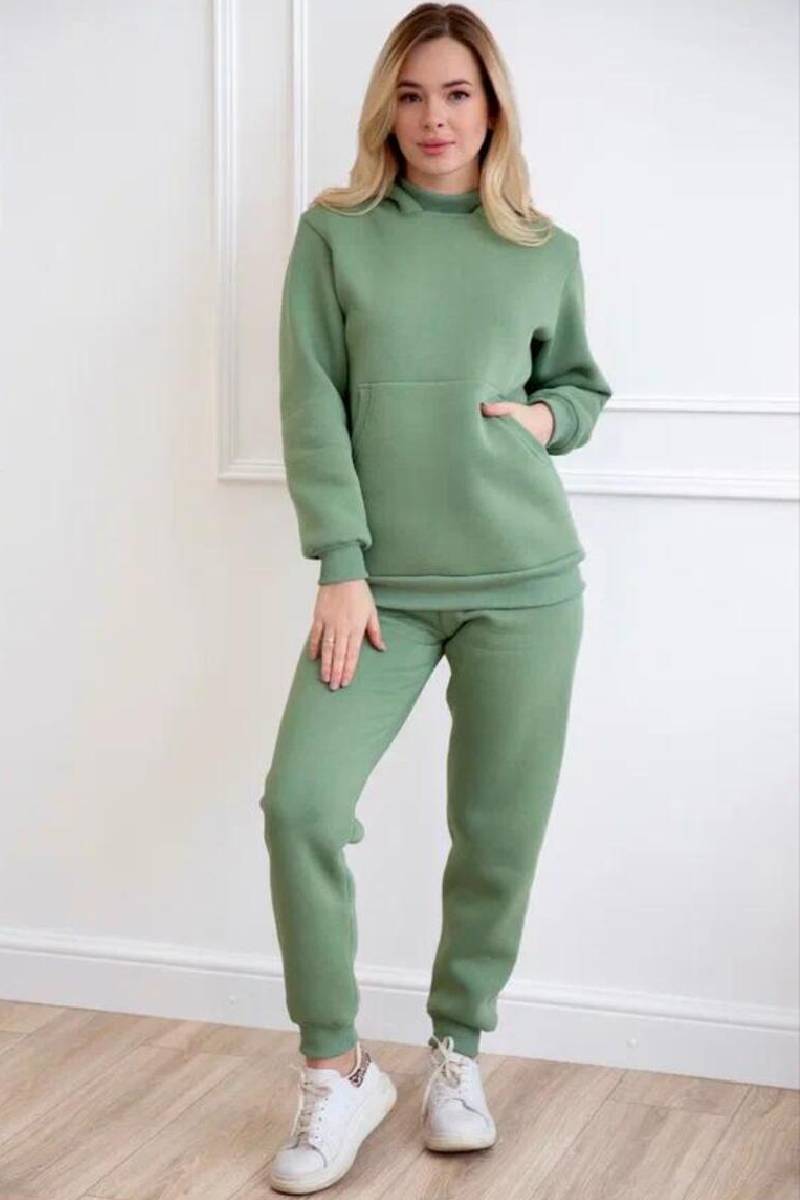 Костюм двойка женский "Фрея Х" футер 3-х нитка с начёсом (последний размер) зелёный 52