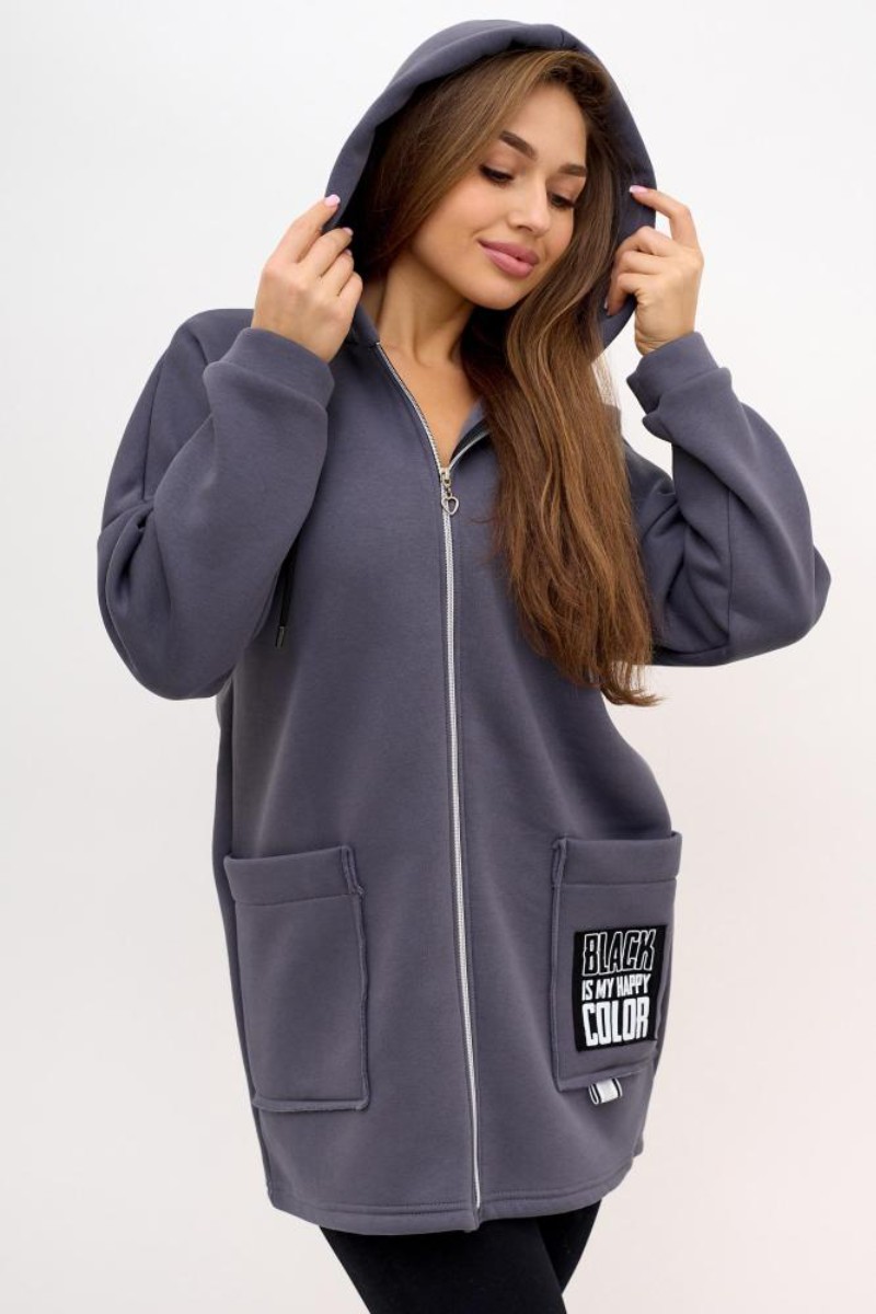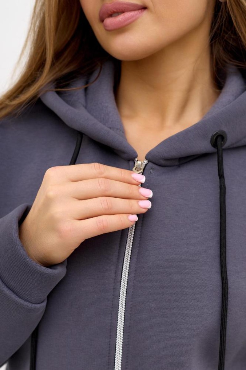 Толстовка женская укороченная "Алина Г" 10261 футер 3-х нитка с начёсом (последний размер) графит 52