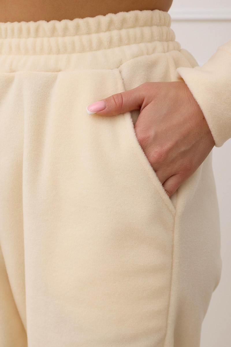 Представляем Вашему вниманию уютные женские брюки, сшитые из приятного телу, высококачественного материала - флиса, устойчивого к износу. Модель дополнена поясом на резинке, манжетами внизу и карманами по бокам.