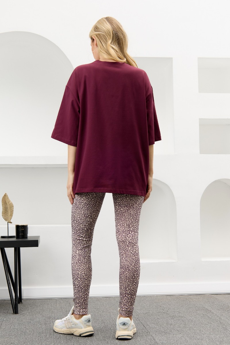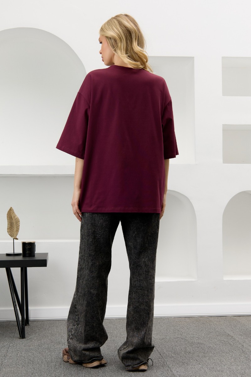 Представляем Вашему вниманию женскую футболку из гладкокрашенного трикотажного полотна «кулирка» с лайкрой, свободная покроя «оверсайз», с горловиной овальной формы, обработанной притачной планкой, рукавами длиной до локтя. На полочке выполнена печать в технике «шелкографии».