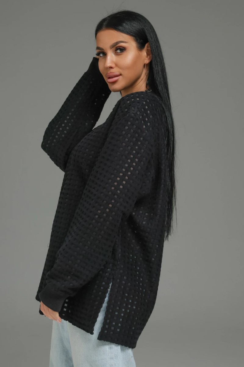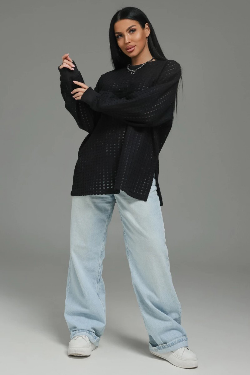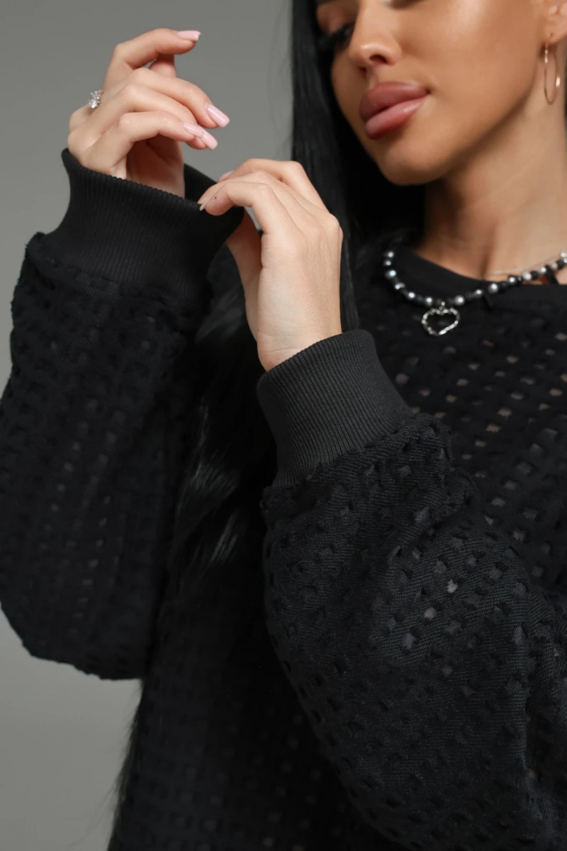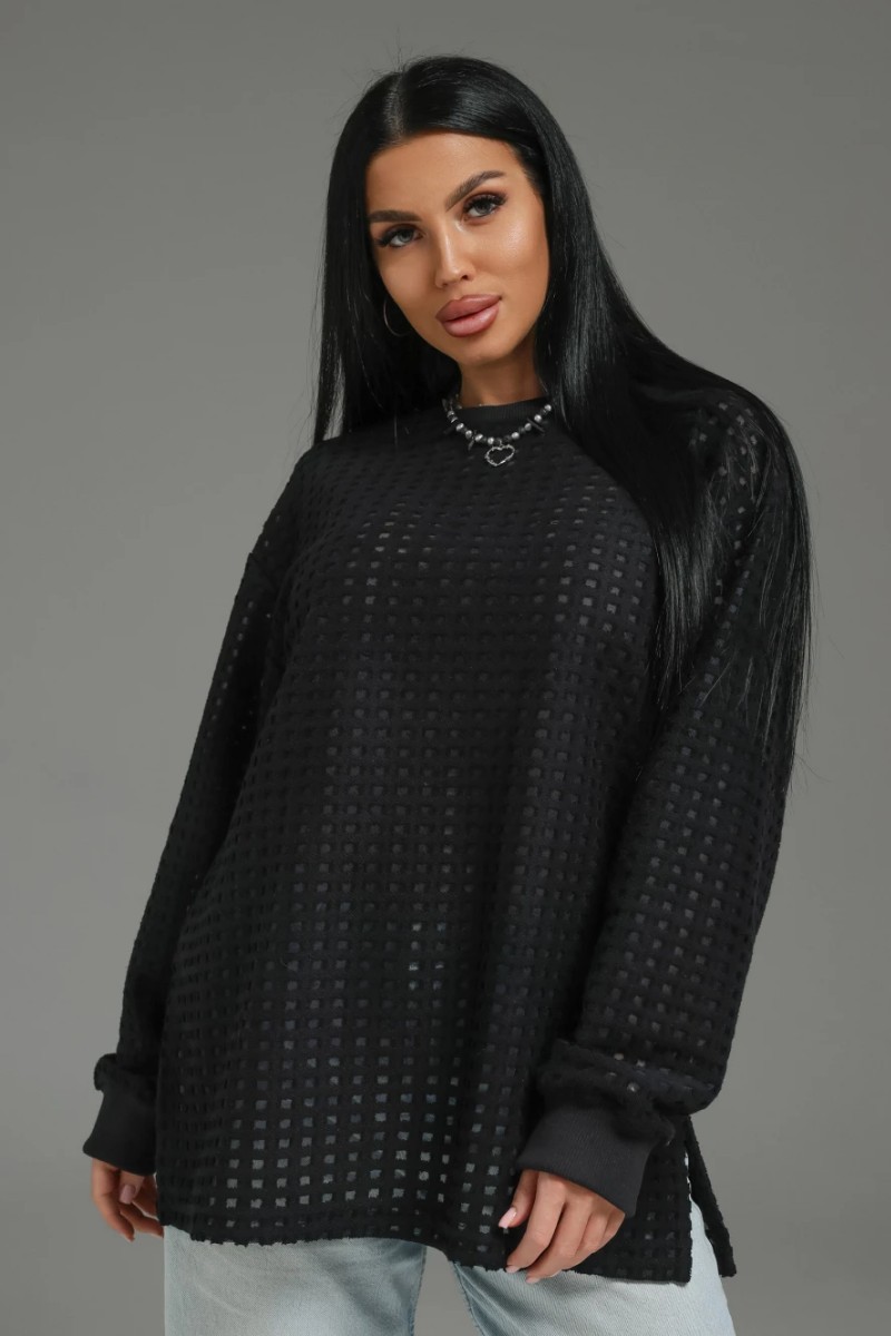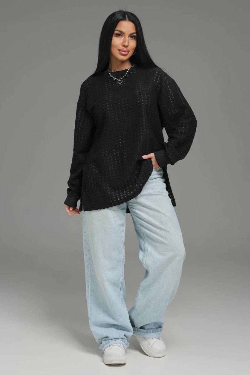Свитшот женский "Фрэнсис" футер 3-х нитка петля жаккард (р-ры: 48-62) черный