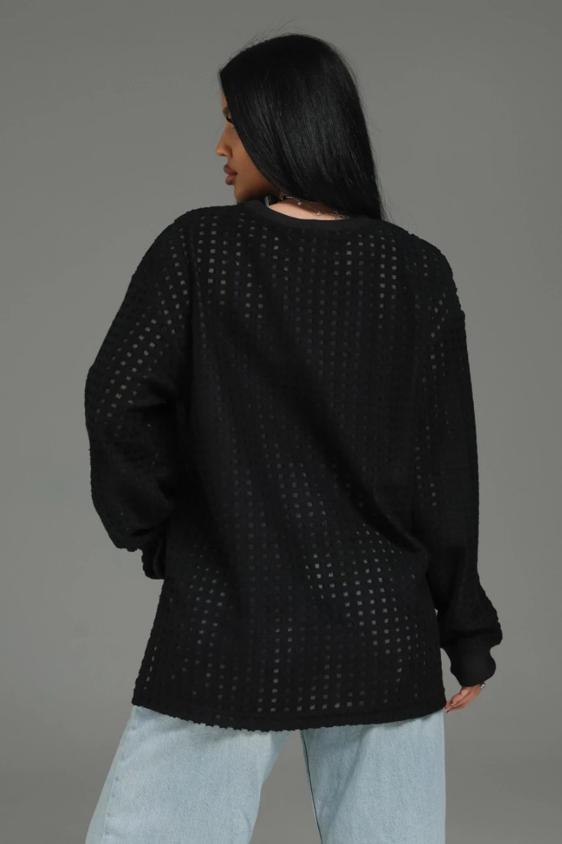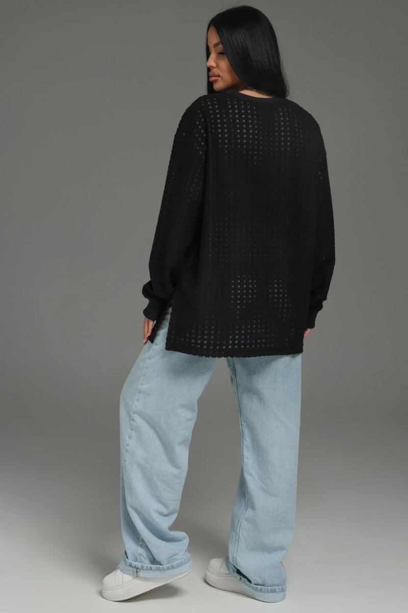 Главный герой — роскошный футер. Это не просто трикотаж. Это футер трехнитка «петля» с жаккардовым узором. Необычная фактура в клетку с прозрачными вставками в каждой клетке. Это ткань, которая выглядит дорого и так же ценно ощущается на теле.