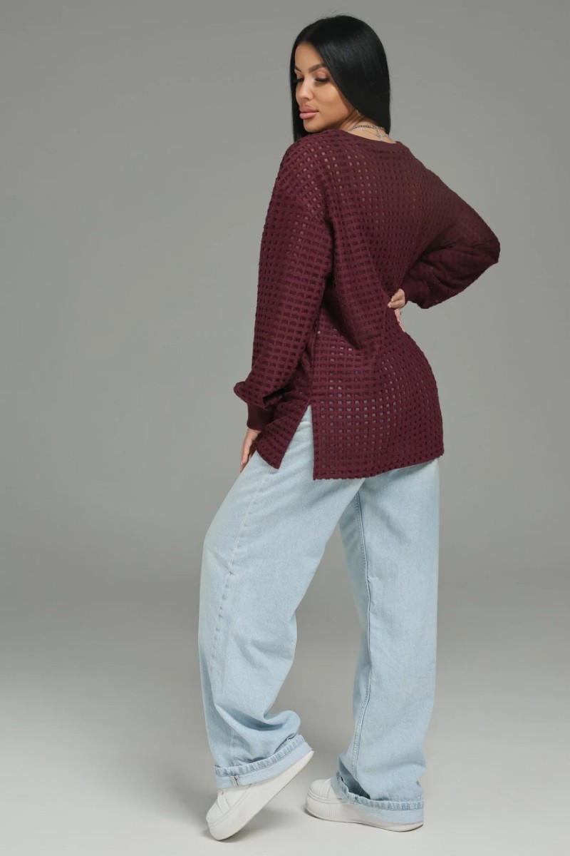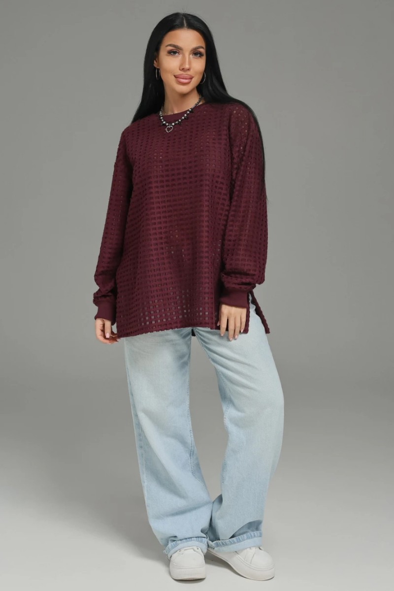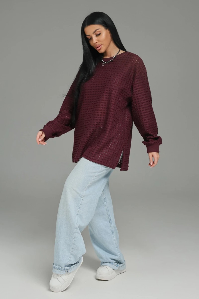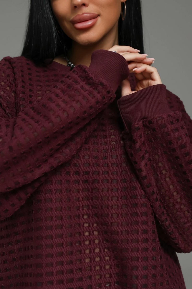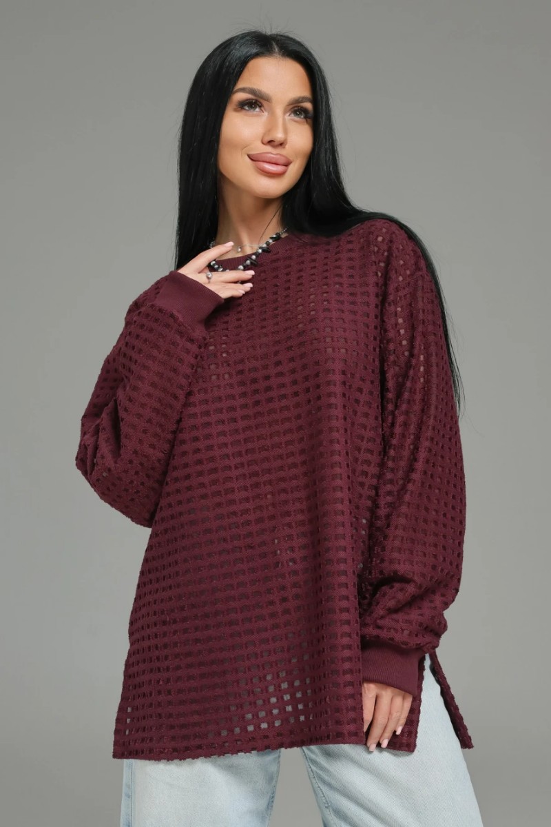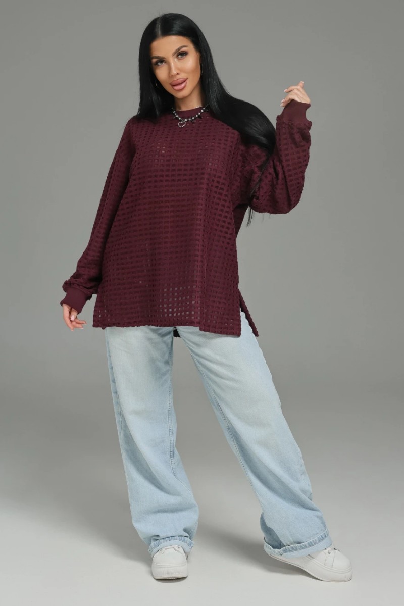 Свитшот женский "Фрэнсис" футер 3-х нитка петля жаккард (р-ры: 48-62) бордо