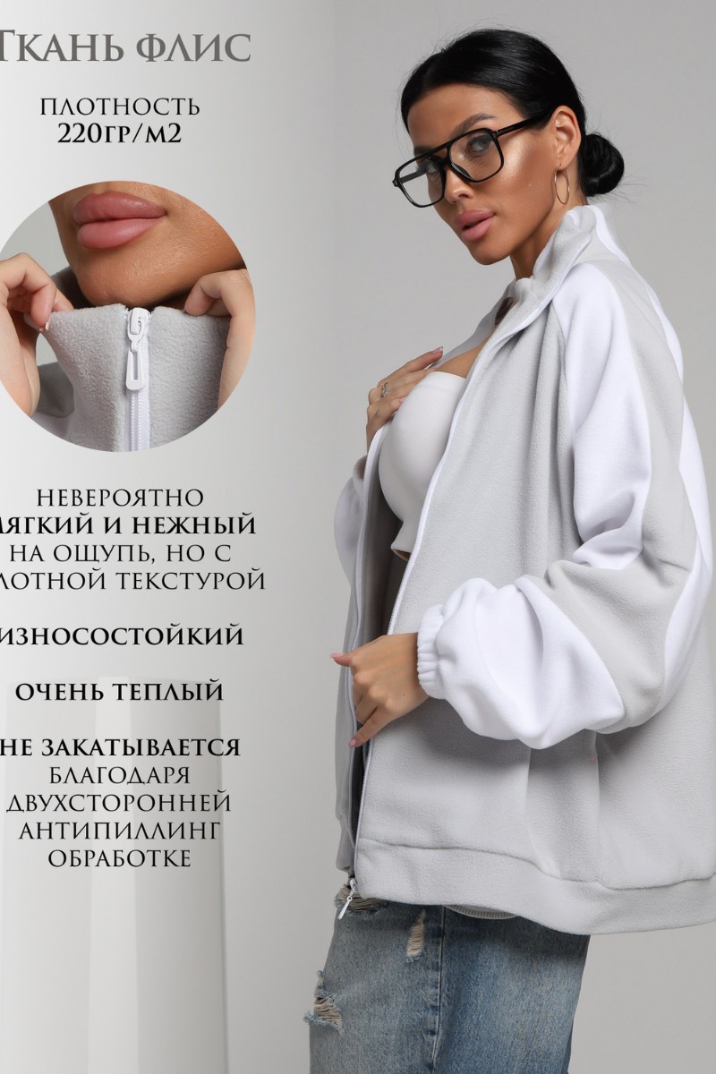 Толстовка женская ТФЛ01 флис (р-ры: 42-60) серый-белый