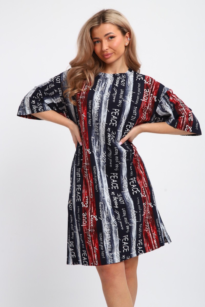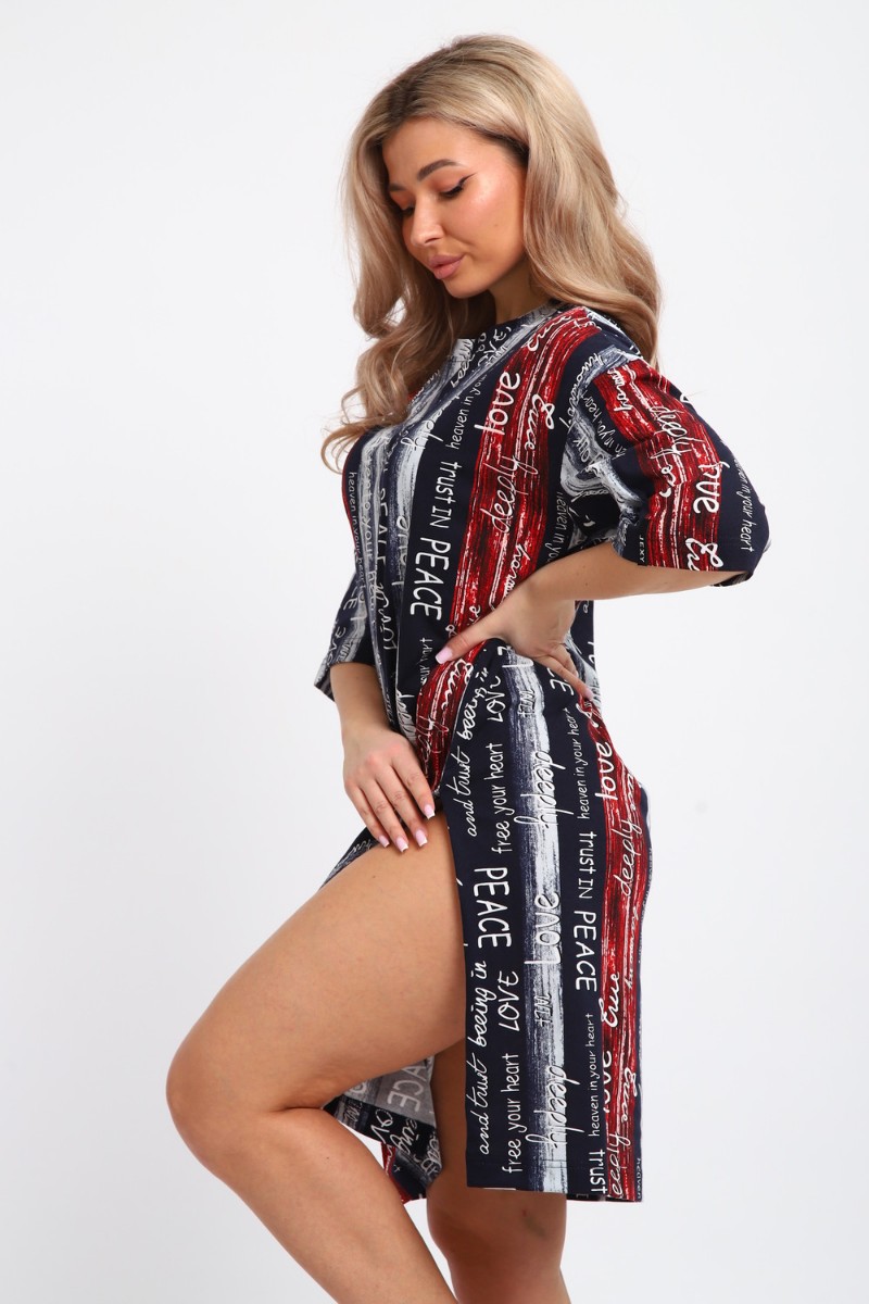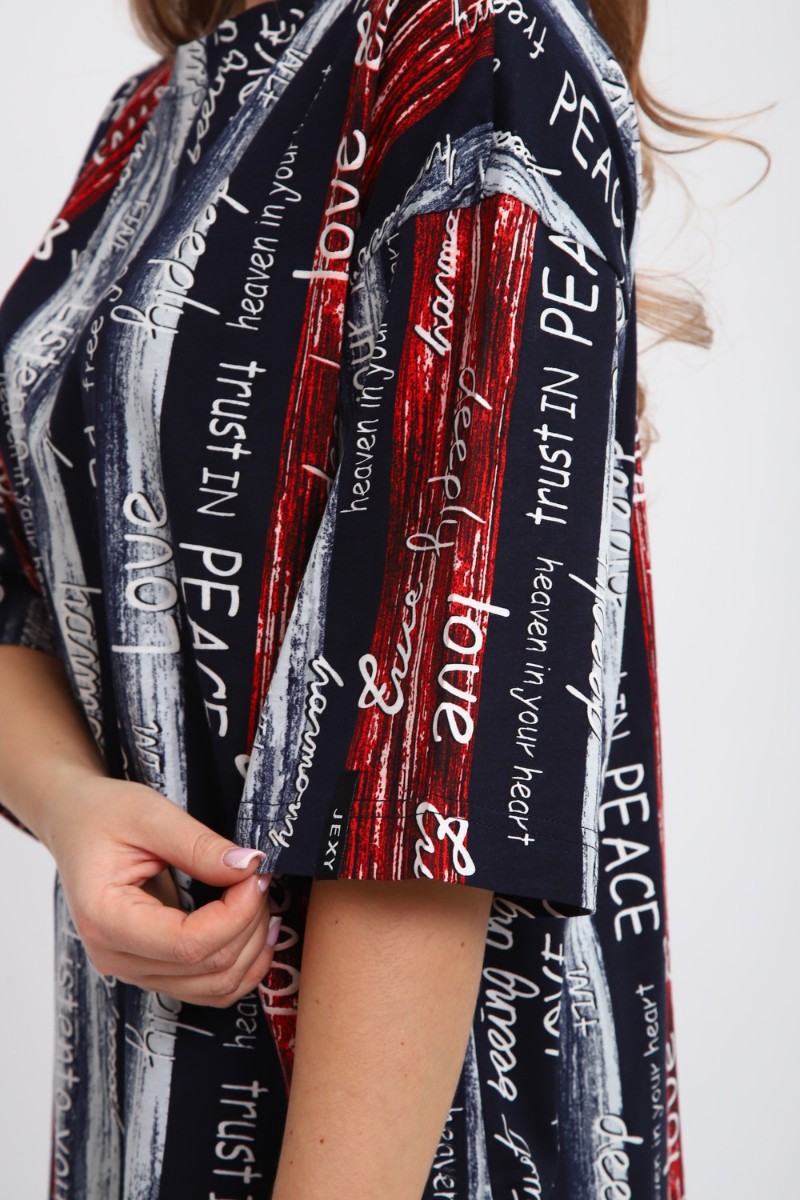 Туника женская ТПК-01 кулирка (р-ры: 46-72) синий-красный-белый-полосы с буквами-love