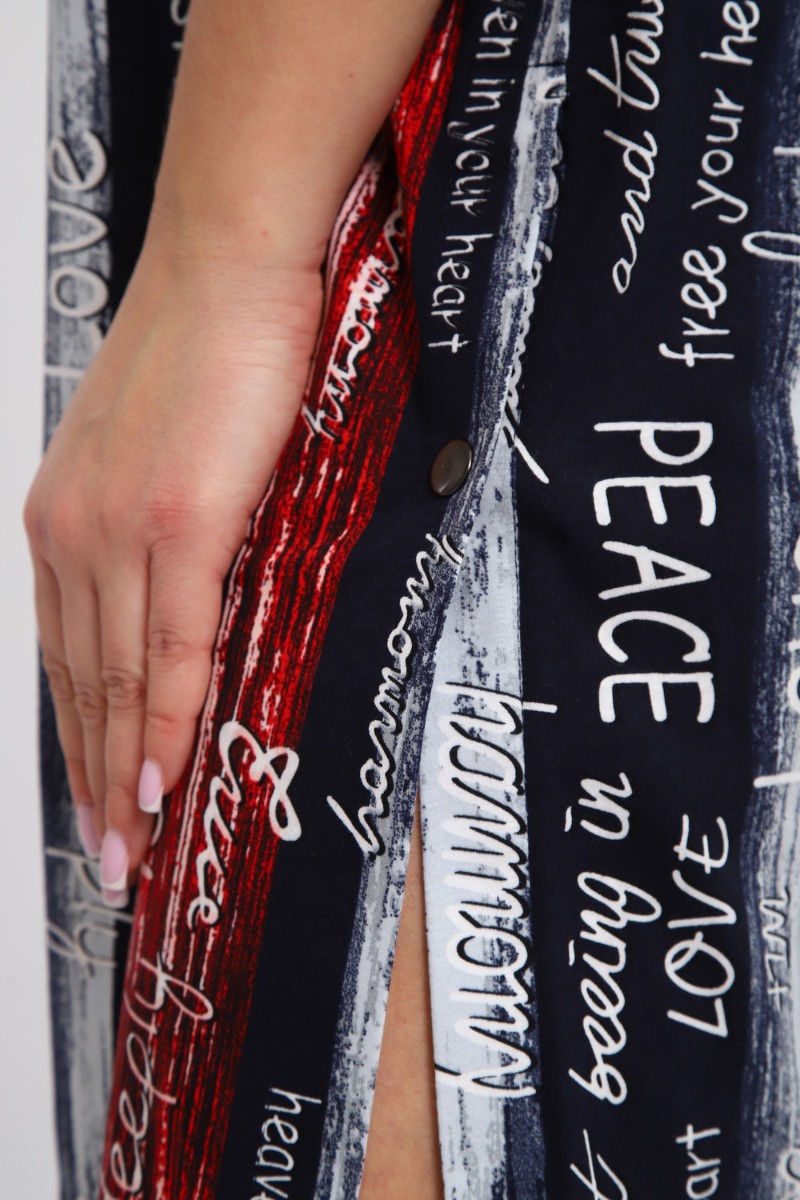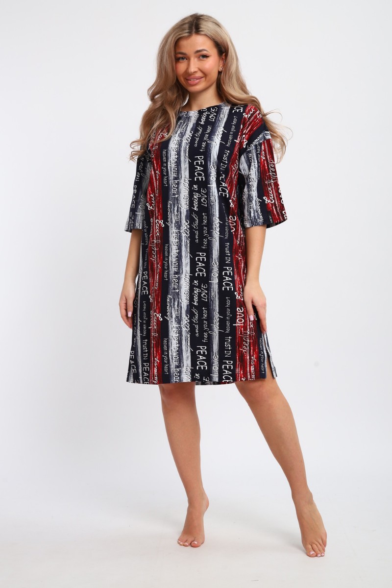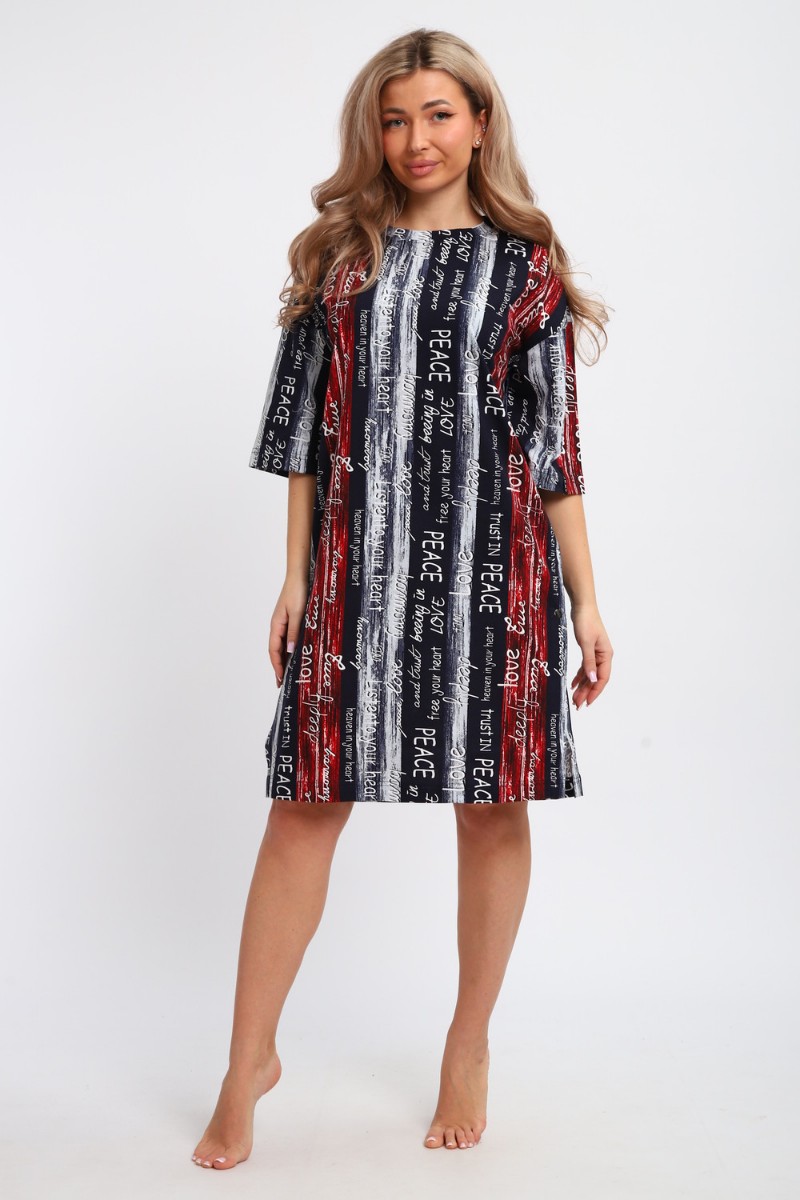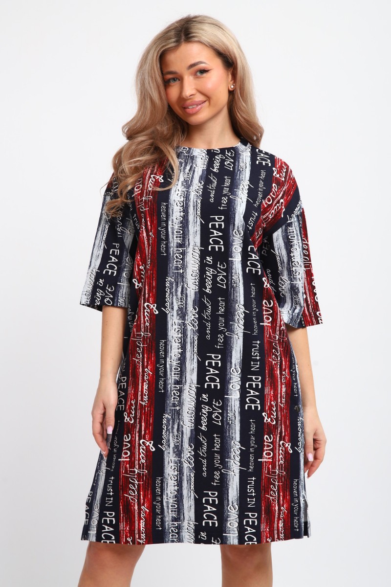 Туника женская ТПК-01 кулирка (р-ры: 46-72) синий-красный-белый-полосы с буквами-love