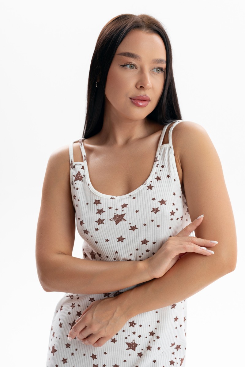Сорочка женская №00029 интерлок (р-ры: 40-54) коричневые звезды