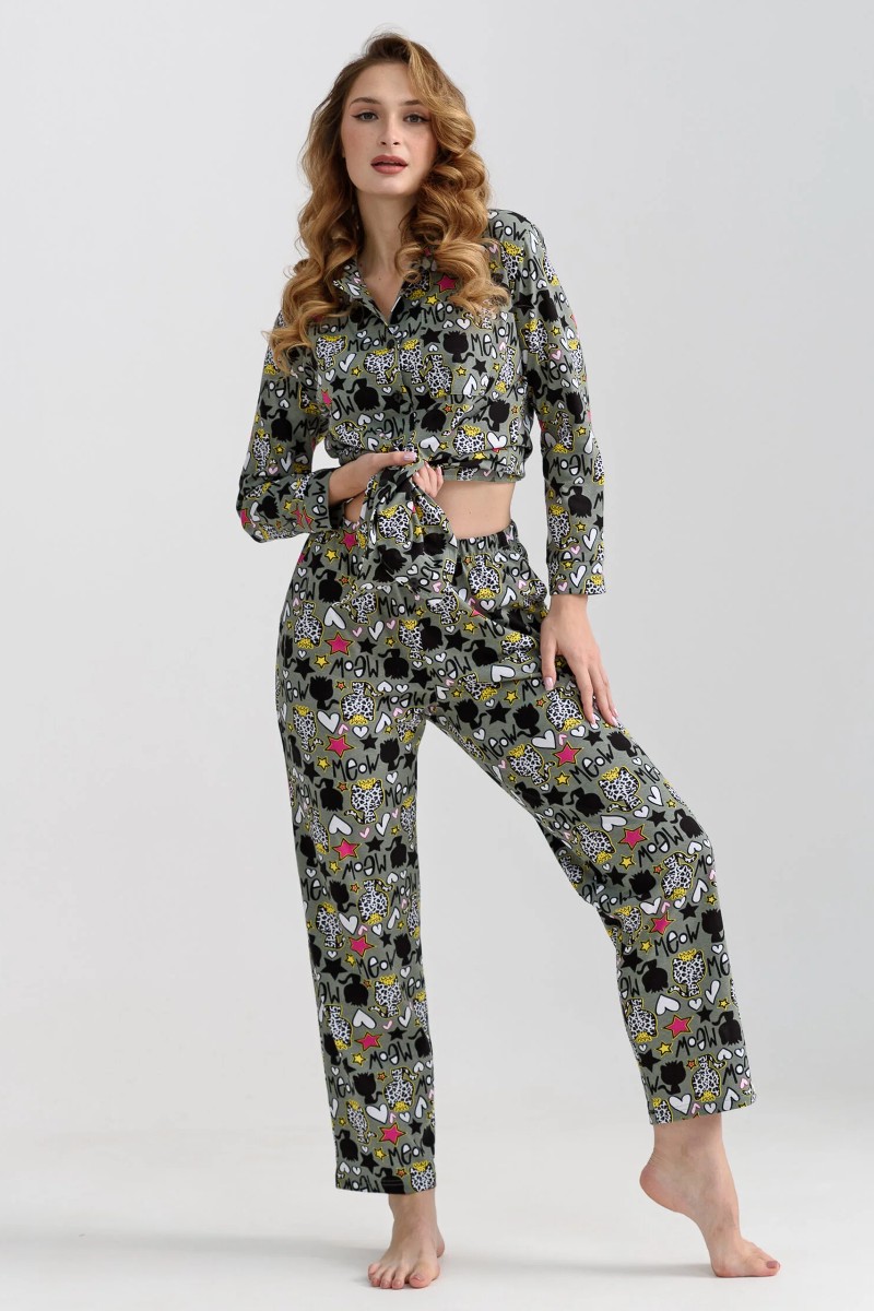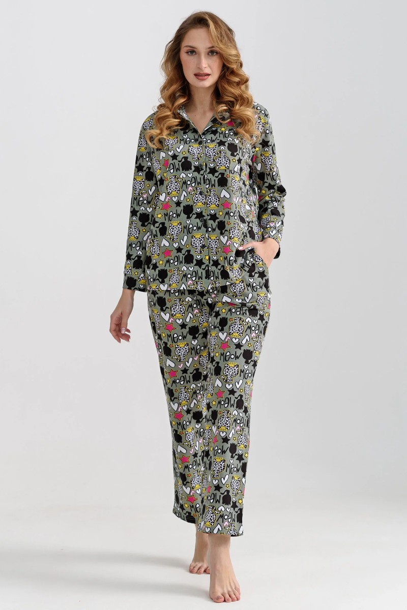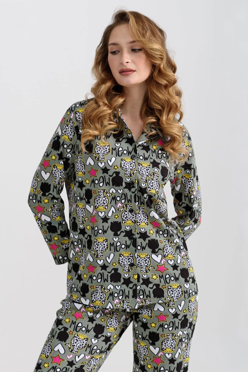Пижама женская "Мяу" 2271-К трикотаж (последний размер) зеленый 48,50,52