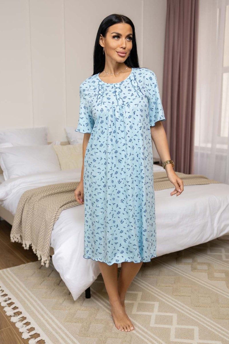 Сорочка женская 1092/23 кулирка (последний размер) голубой-синий 48,60
