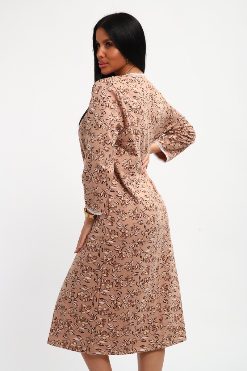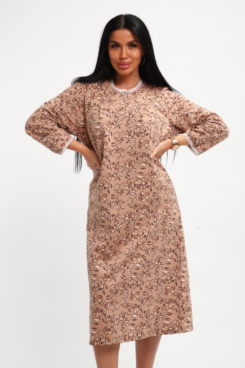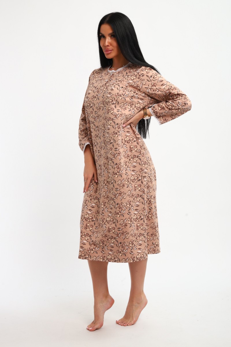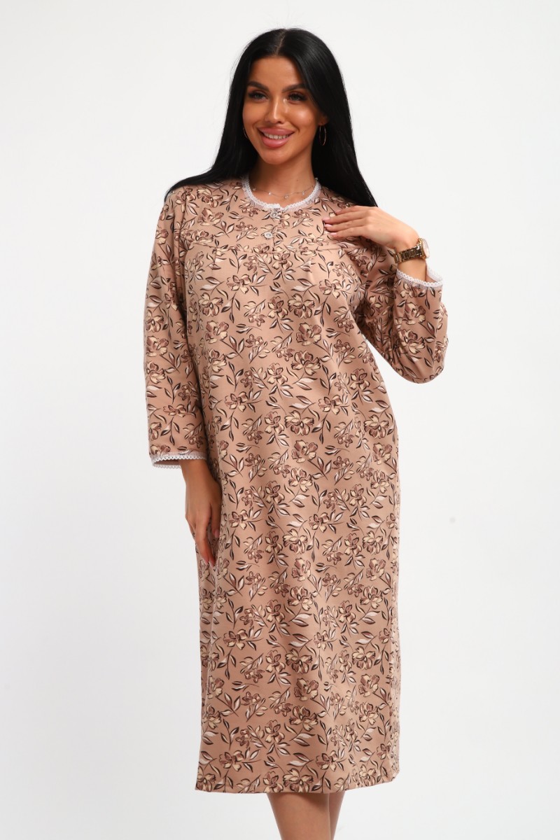 Сорочка женская М37 футер (р-ры: 46-60) цветы на какао новый