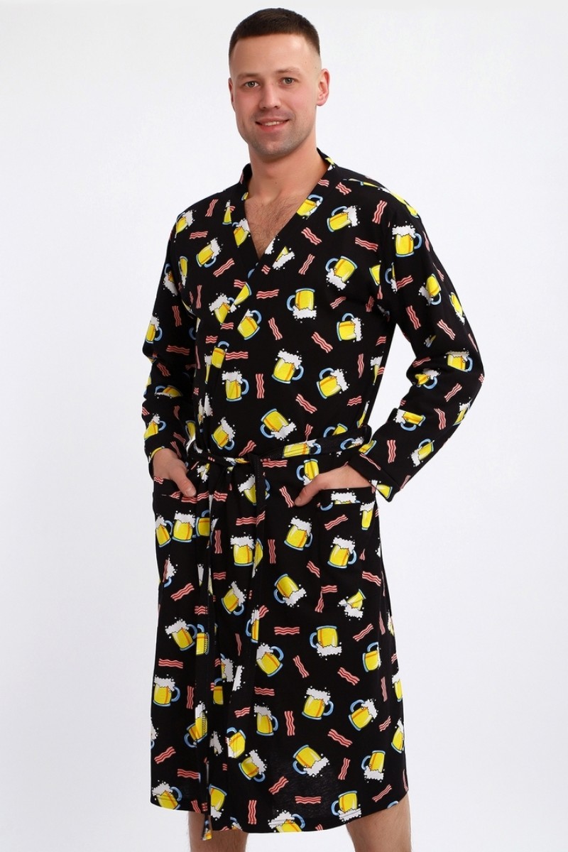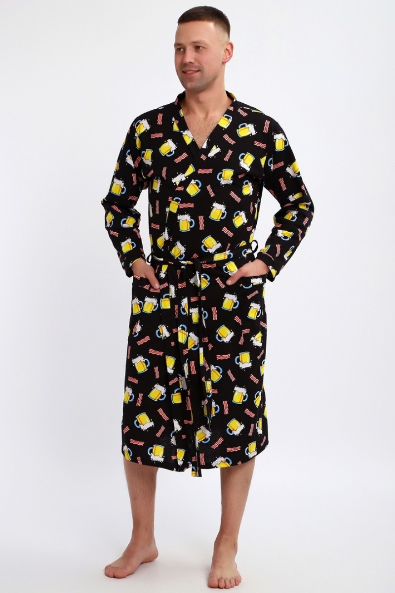 Халат мужской 804 "Пиво" кулирка (р-ры: 50-60) черный